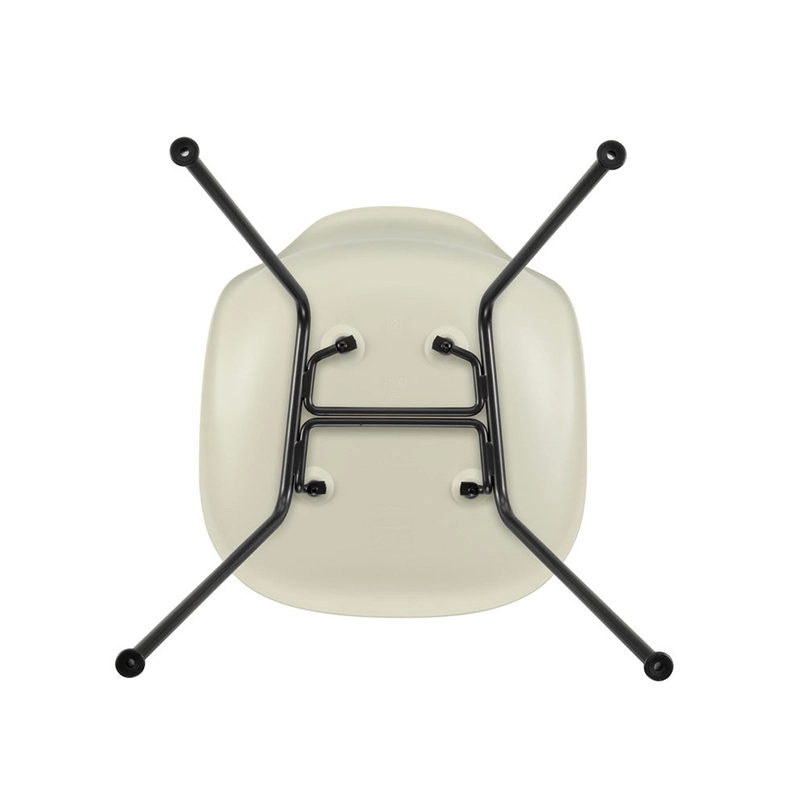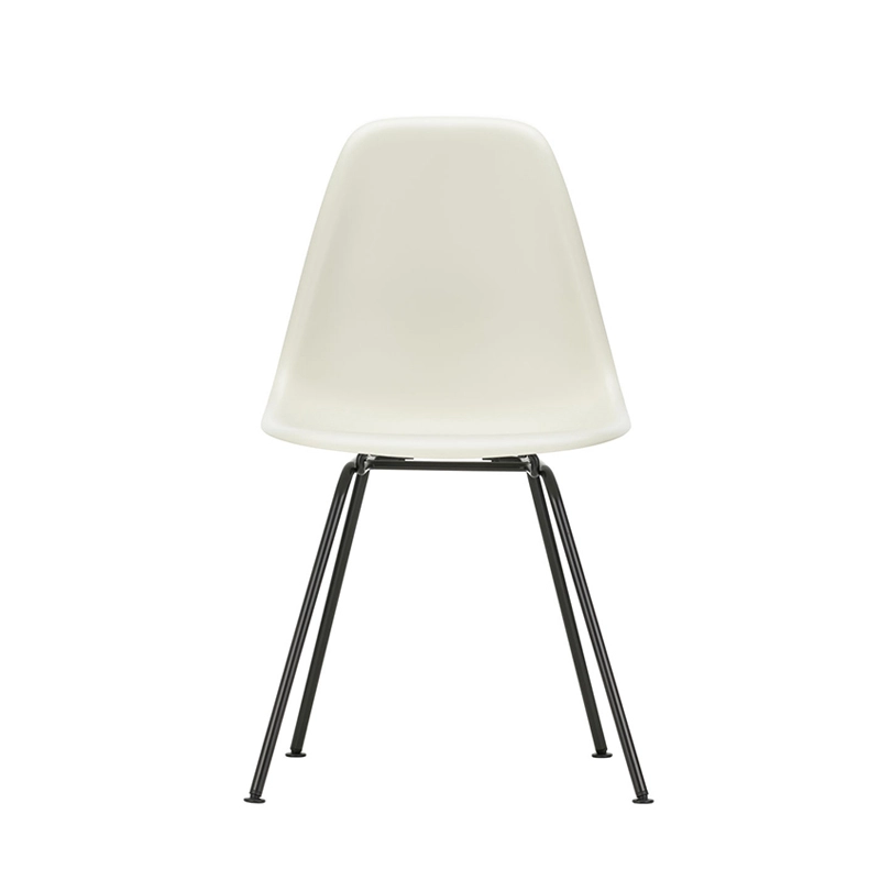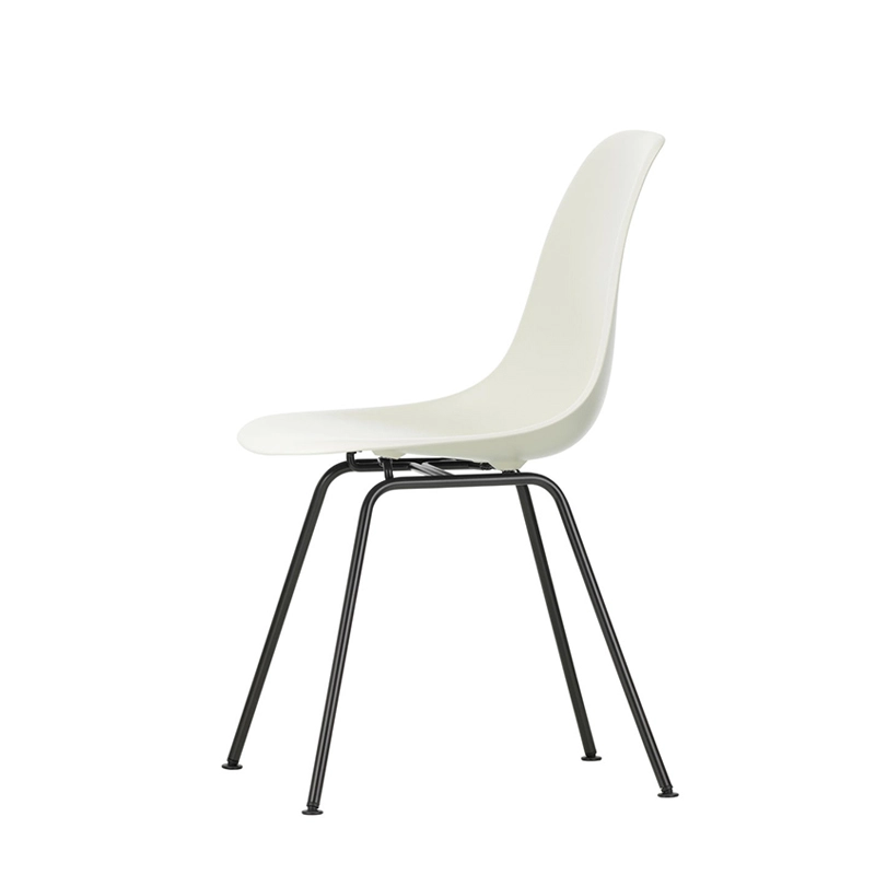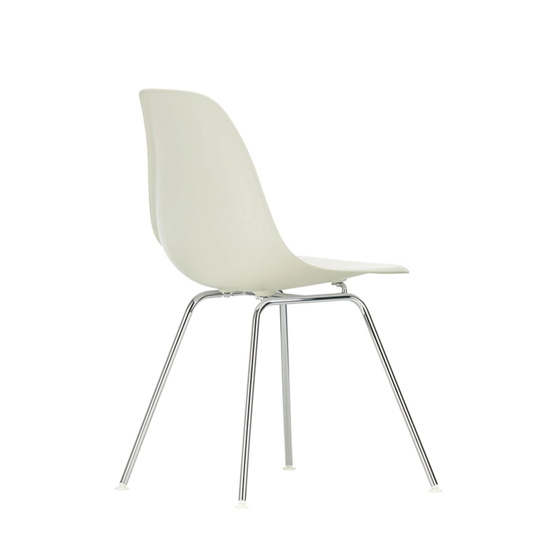 Les Plastic Armchairs dessinés par Charles et Ray Eames dans les années 50 ont été présentés pour la première fois dans le cadre du concours « Low Cost Furniture Design » organisé par le Museum of Modern Art de New York. La coque aux lignes organiques était à l'origine en fibre de verre. Rééditée par Vitra avec une coque en polypropylène, La chaise DSX (Dining Height Side Chair X-Base) à l'esthétique sobre se définit par un piètement à quatre pieds en tube d'acier et une coque aux formes organiques disponible en une large palette de couleurs. Le piètement se décline en version chromée ou finition époxy noir qui est adapté aussi à une utilisation à l'extérieur. La chaise DSX s'adapte aussi bien aux espaces domestiques qu'aux environnements collectifs. En adoptant le polypropylène moulé, Vitra en a amélioré à la fois la robustesse, l'élasticité et le confort. À partir d'une unique forme de coque, la chaise est déclinée en trois grandes familles caractérisées par la forme du piètement : la chaise Eames DSR avec piètement Eiffel, la chaise Eames DSW avec piètement à croisillons de bois et la chaise Eames DSX à piètement tubulaire simple. Les chaises Eames DSXE sont disponibles en plusieurs couleurs, avec ou sans coussin d'assise ou rembourrage intérieur.