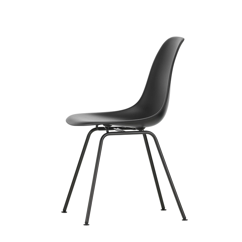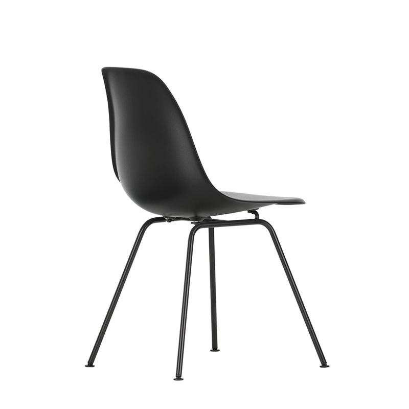 Les Plastic Armchairs dessinés par Charles et Ray Eames dans les années 50 ont été présentés pour la première fois dans le cadre du concours « Low Cost Furniture Design » organisé par le Museum of Modern Art de New York. La coque aux lignes organiques était à l'origine en fibre de verre. Rééditée par Vitra avec une coque en polypropylène, La chaise DSX (Dining Height Side Chair X-Base) à l'esthétique sobre se définit par un piètement à quatre pieds en tube d'acier et une coque aux formes organiques disponible en une large palette de couleurs. Le piètement se décline en version chromée ou finition époxy noir qui est adapté aussi à une utilisation à l'extérieur. La chaise DSX s'adapte aussi bien aux espaces domestiques qu'aux environnements collectifs. En adoptant le polypropylène moulé, Vitra en a amélioré à la fois la robustesse, l'élasticité et le confort. À partir d'une unique forme de coque, la chaise est déclinée en trois grandes familles caractérisées par la forme du piètement : la chaise Eames DSR avec piètement Eiffel, la chaise Eames DSW avec piètement à croisillons de bois et la chaise Eames DSX à piètement tubulaire simple. Les chaises Eames DSXE sont disponibles en plusieurs couleurs, avec ou sans coussin d'assise ou rembourrage intérieur.
