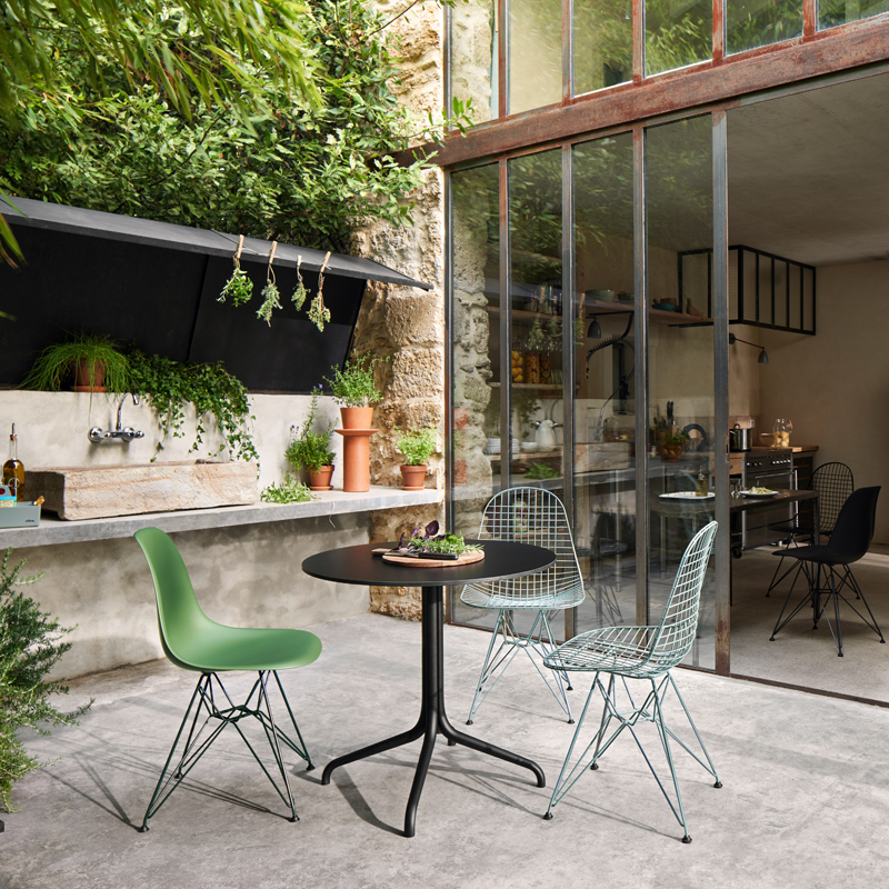 Le couple Charles et Ray Eames dessine une variation de la chaise DSR avec cette version réalisée en fil d'acier soudé. La Wire Chair DKR allie légèreté et sophistication technique. Grâce à sa finition époxy, la Wire Chair s'adapte aussi bien à une salle à manger à l'intérieur que sur une terrasse ou dans un jardin. Editée par Vitra, elle est à l'image de la collection d'assises réalisées par le couple Eames : des classiques intemporels.