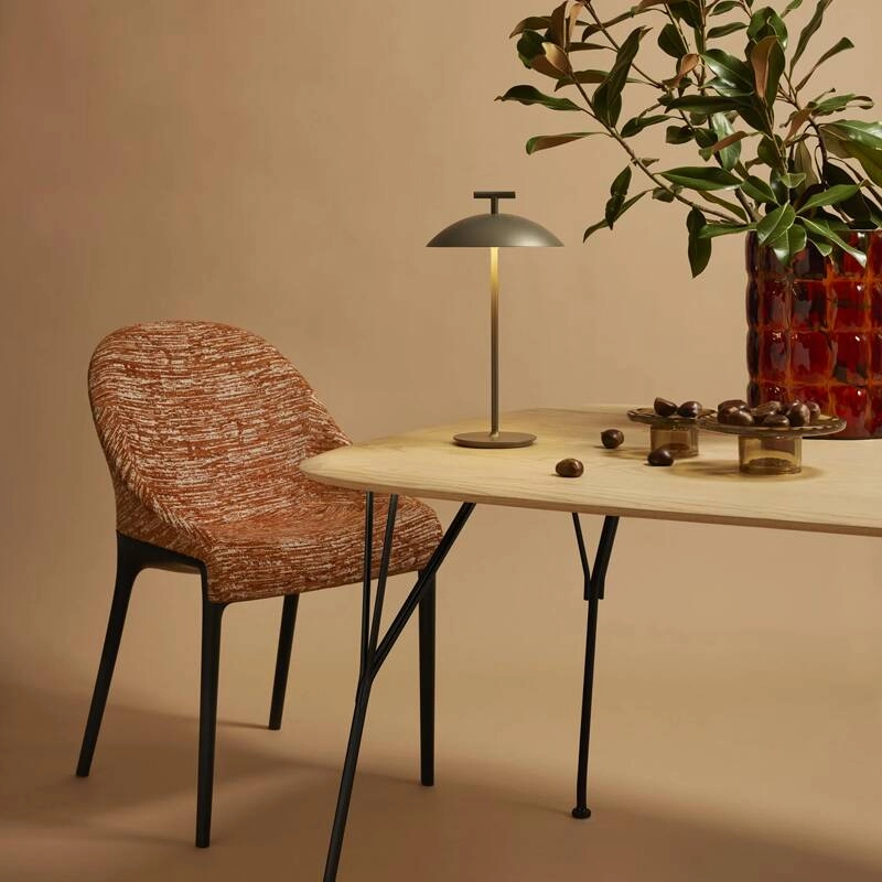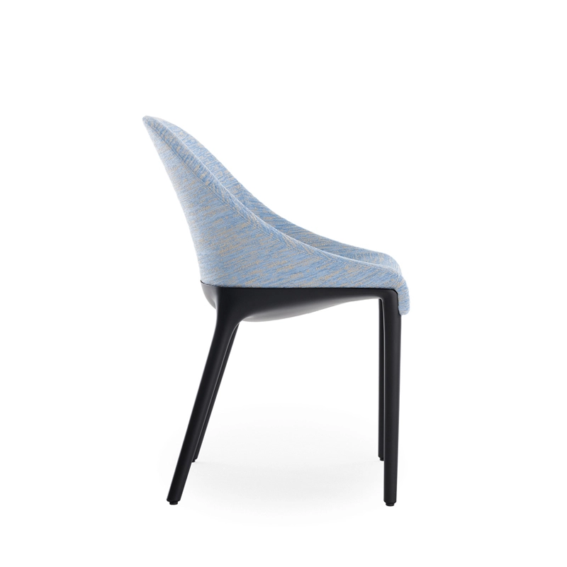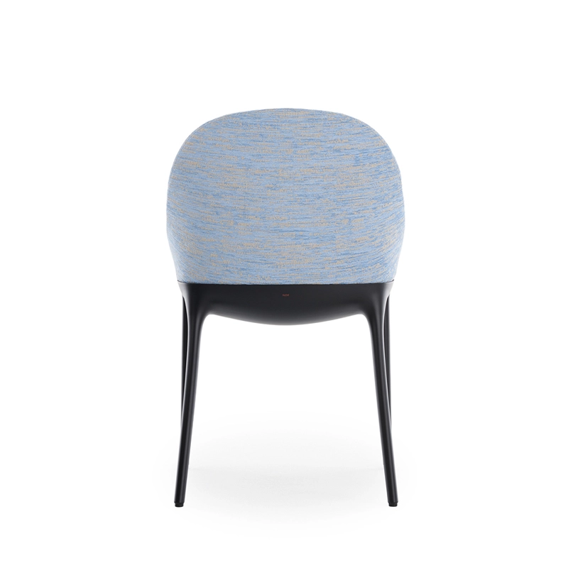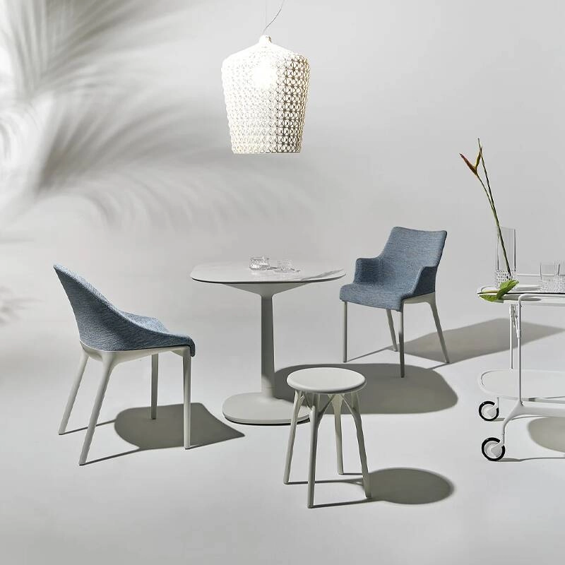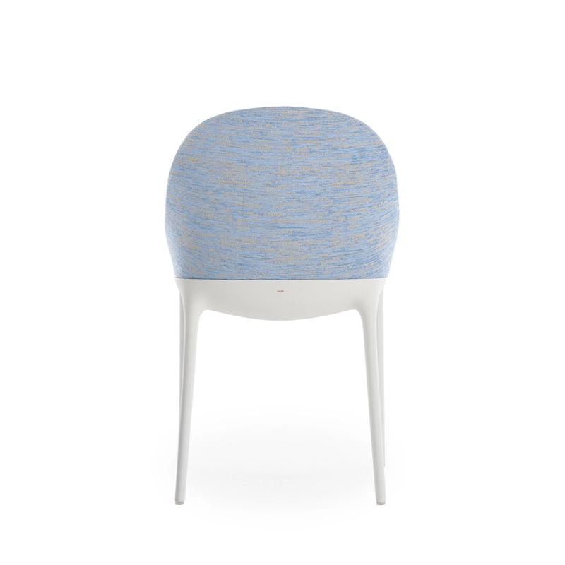 Dessinée par Philippe Starck pour Kartell, Eleganza Ela redessine les traits essentiels du style italien avec une chaise intemporelle unissant l’univers de la Haute Couture et de l’élégance. La chaise rembourrée se décline en deux versions : Eleganza Ela et Eleganza Nia, toutes deux dotées de formes sinueuses et légères sublimant le tissu habillant délicatement les lignes de la chaise.
