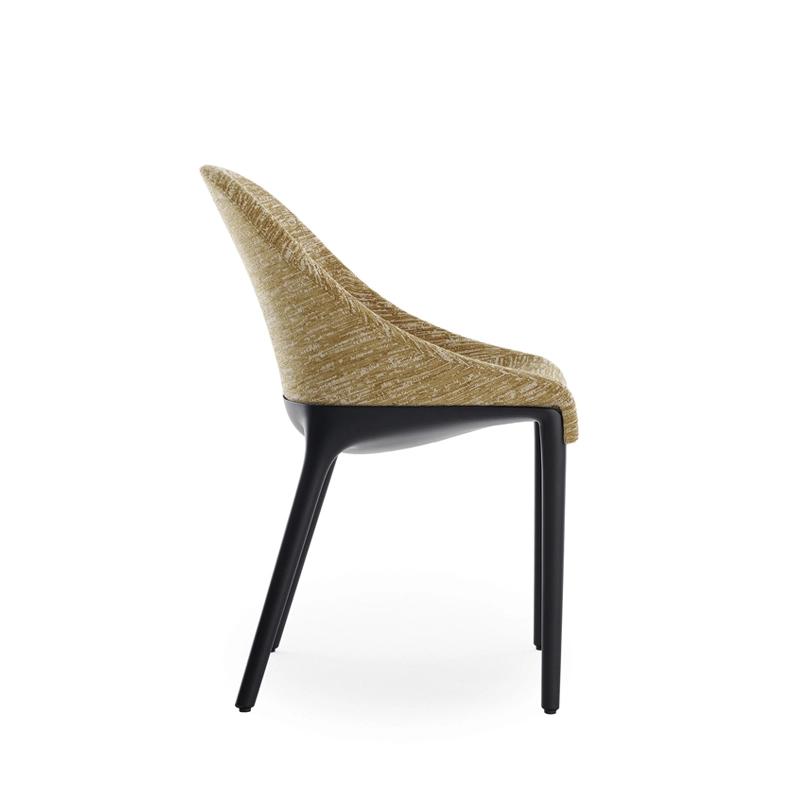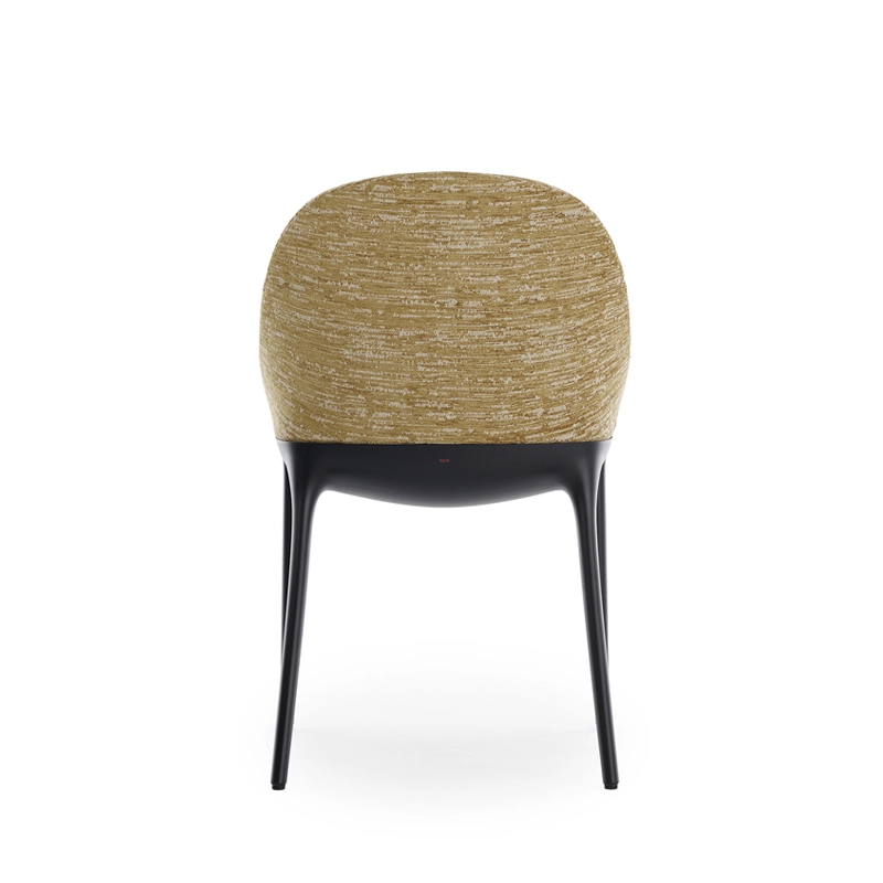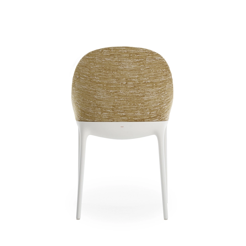 Dessinée par Philippe Starck pour Kartell, Eleganza Ela redessine les traits essentiels du style italien avec une chaise intemporelle unissant l’univers de la Haute Couture et de l’élégance. La chaise rembourrée se décline en deux versions : Eleganza Ela et Eleganza Nia, toutes deux dotées de formes sinueuses et légères sublimant le tissu habillant délicatement les lignes de la chaise.