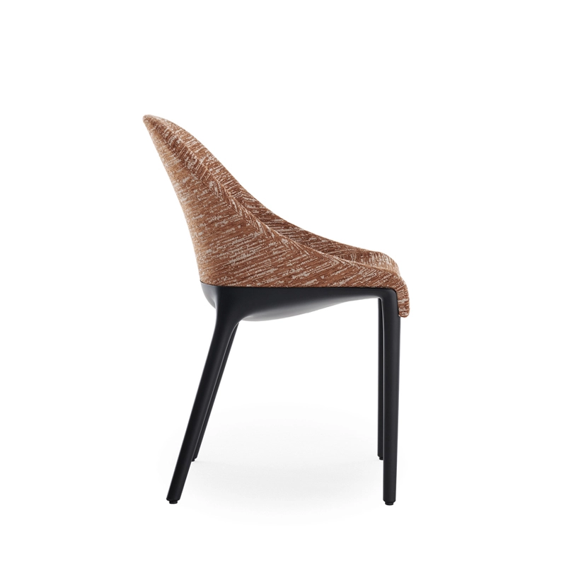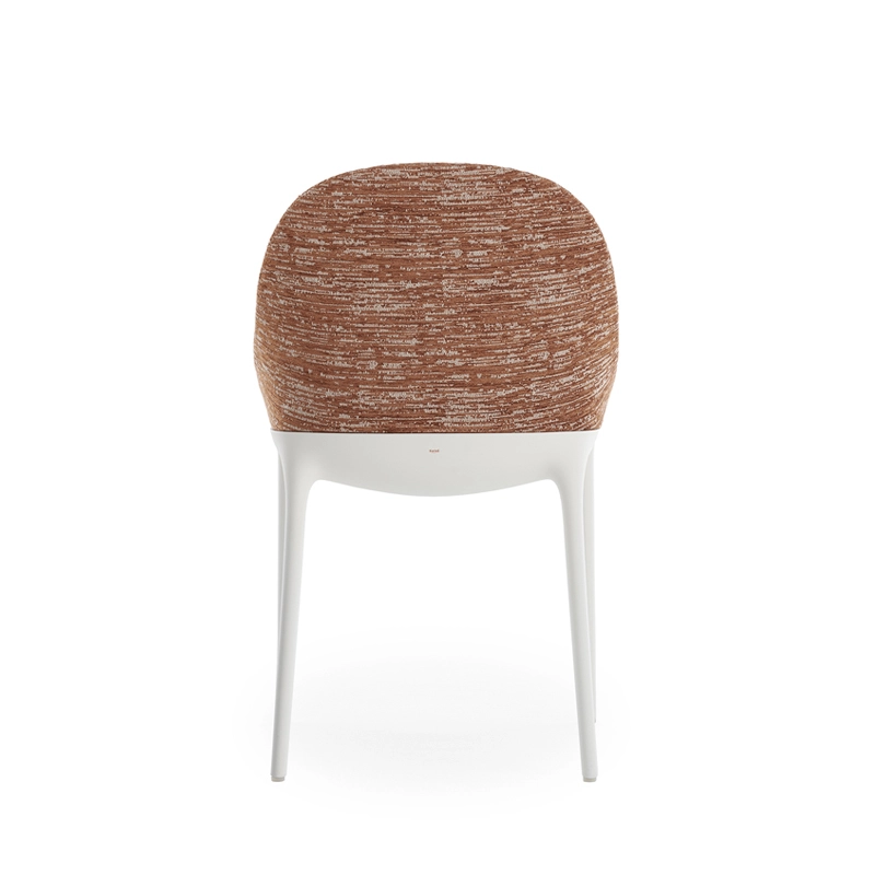 Dessinée par Philippe Starck pour Kartell, Eleganza Ela redessine les traits essentiels du style italien avec une chaise intemporelle unissant l’univers de la Haute Couture et de l’élégance. La chaise rembourrée se décline en deux versions : Eleganza Ela et Eleganza Nia, toutes deux dotées de formes sinueuses et légères sublimant le tissu habillant délicatement les lignes de la chaise.