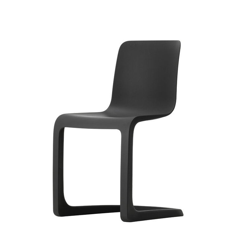 Avec EVO-C, Jasper Morrison et Vitra ont réussi à transposer le principe de base et le confort distinctif de la chaise à porte-à-faux classique dans un modèle ergonomique, léger et confortable, réalisé en polypropylène 100% recyclable. Grâce à la technologie actuelle de moulage par injection de gaz, les structures en plastique peuvent atteindre la résistance et la rigidité éprouvées des constructions en porte-à-faux réalisées en tube d'acier. La structure porteuse est constituée d'éléments tubulaires creux qui s'intègrent parfaitement dans les surfaces planes de l'assise et du dossier. Ayant pour but de se passe de tous les détails superflus, le designer Jasper Morrison a conçu une chaise définie par les facteurs indispensables pour garantir la stabilité et le confort. EVO-C combine la souplesse de l'acier tubulaire avec le confort d'une coque d'assise ergonomique.