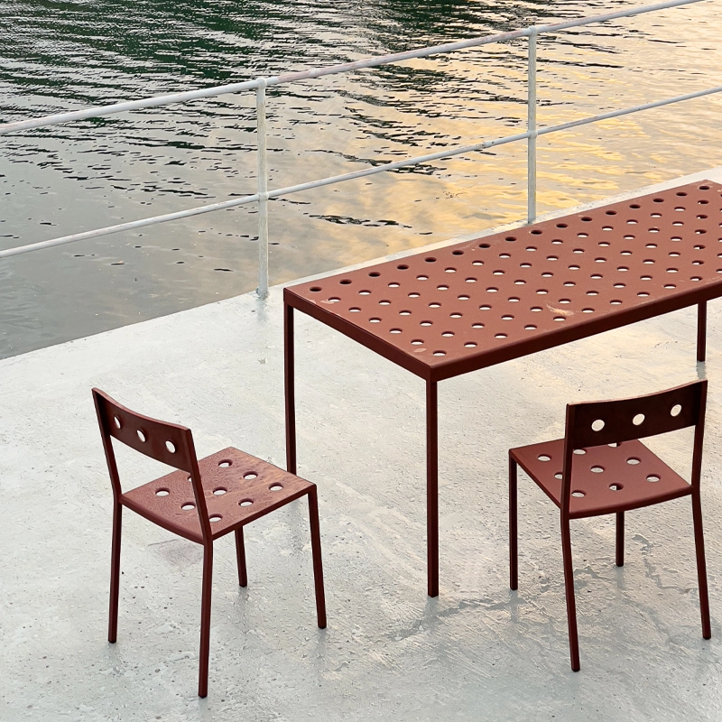 Balcony est une collection de mobilier pour extérieur conçue par les designers Ronan et Erwan Bouroullec pour la marque Hay. Le design carré est adouci par les trous et les bords arrondis, qui donnent non seulement à la collection une expression distinctive, mais aussi renforcent la construction. Toute la collection Balcony est réalisée en acier revêtu de poudre qui reçoit en plus un traitement contre la corrosion. Cette double finition permet une résistance et une durabilité optimale. Déclinée en plusieurs couleurs, la collection de meubles outdoor Balcony est parfaitement adaptée aux balcons, jardins et autres espaces extérieurs. La collection Balcony comprend des chaises et fauteuils empilables, un banc décliné en deux longueurs, une table de repas disponible en trois dimensions et une table basse.