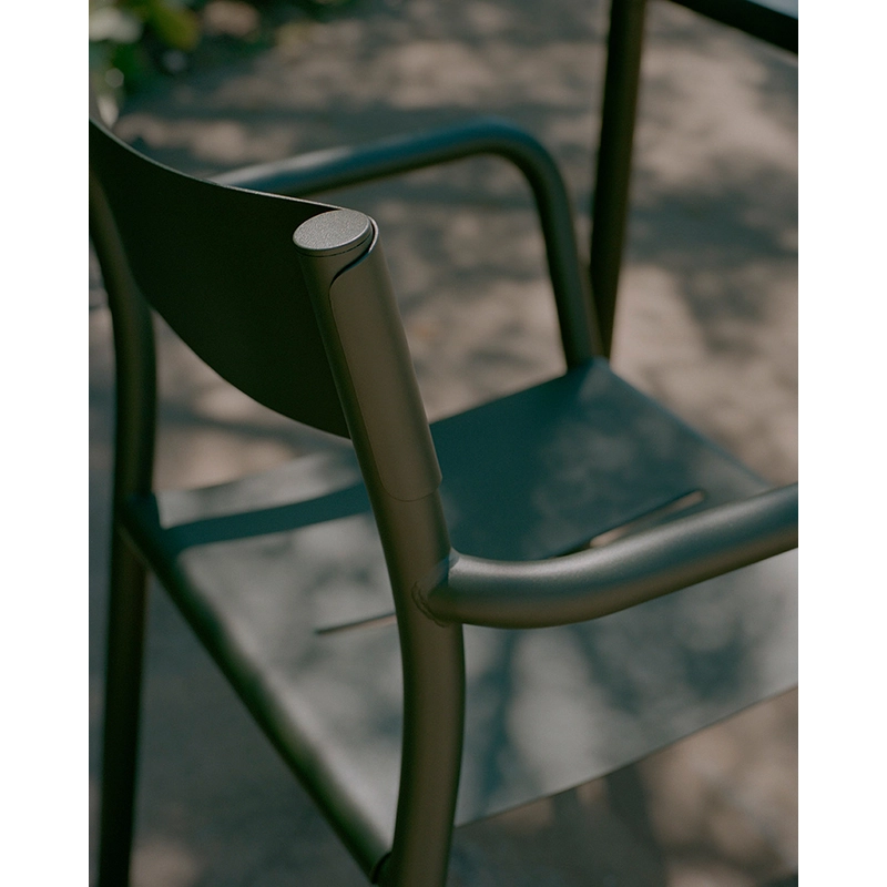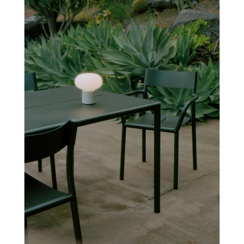 New Works a créé la collection May, comprenant des sièges et des tables spécialement conçus pour les espaces extérieurs. Fabriqué en acier revêtu de poudre, le petit fauteuil May est résistant à toutes les conditions météorologiques. À l'instar de la chaise May, ce petit fauteuil avec accoudoirs est empilable, offrant ainsi une praticité optimale pour le rangement. Le design de la série May se distingue par sa simplicité élégante et ses détails précis, mariant une surface délicate et poudrée avec un cadre en acier robuste. Le petit fauteuil May présente un siège confortable légèrement courbé, avec une fente au milieu pour faciliter le drainage de l'eau, une caractéristique présente également sur les tables de la série. Cette conception astucieuse crée une répétition de lignes qui apporte légèreté et cohérence à l'ensemble du mobilier d'extérieur. Ce petit fauteuil représente le mariage parfait entre élégance et fonctionnalité, offrant aux espaces extérieurs tels que les jardins, les patios, les terrasses et les balcons un mobilier durable et esthétique. Le petit fauteuil May de New Works incarne ainsi le compromis idéal entre style contemporain et praticité, ajoutant une touche d'élégance à tout environnement extérieur.