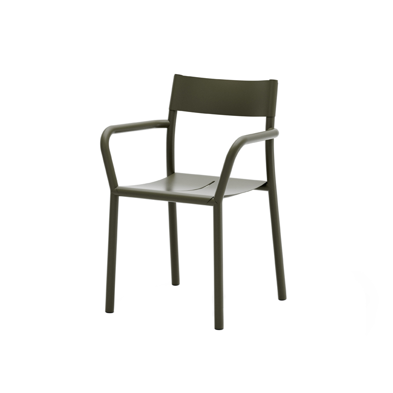 New Works a créé la collection May, comprenant des sièges et des tables spécialement conçus pour les espaces extérieurs. Fabriqué en acier revêtu de poudre, le petit fauteuil May est résistant à toutes les conditions météorologiques. À l'instar de la chaise May, ce petit fauteuilavec accoudoirs est empilable, offrant ainsi une praticité optimale pour le rangement. Le design de la série May se distingue par sa simplicité élégante et ses détails précis, mariant une surface délicate et poudrée avec un cadre en acier robuste. Le petit fauteuil May présente un siège confortable légèrement courbé, avec une fente au milieu pour faciliter le drainage de l'eau, une caractéristique présente également sur les tables de la série. Cette conception astucieuse crée une répétition de lignes qui apporte légèreté et cohérence à l'ensemble du mobilier d'extérieur. Ce petit fauteuil représente le mariage parfait entre élégance et fonctionnalité, offrant aux espaces extérieurs tels que les jardins, les patios, les terrasses et les balcons un mobilier durable et esthétique. Le petit fauteuil May de New Works incarne ainsi le compromis idéal entre style contemporain et praticité, ajoutant une touche d'élégance à tout environnement extérieur.