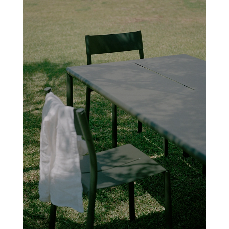 New Works a créé la collection May, comprenant des sièges et des tables spécialement conçus pour les espaces extérieurs. Fabriquée en acier revêtu de poudre, la chaise May est résistante à toutes les conditions météorologiques. À l'instar du petit fauteuil May, cette chaise est empilable, offrant ainsi une praticité optimale pour le rangement. Le design de la série May se distingue par sa simplicité élégante et ses détails précis, mariant une surface délicate et poudrée avec un cadre en acier robuste. La chaise May présente un siège confortable légèrement courbé, avec une fente au milieu pour faciliter le drainage de l'eau, une caractéristique présente également sur les tables de la série. Cette conception astucieuse crée une répétition de lignes qui apporte légèreté et cohérence à l'ensemble du mobilier d'extérieur. Cette chaise représente le mariage parfait entre élégance et fonctionnalité, offrant aux espaces extérieurs tels que les jardins, les patios, les terrasses et les balcons un mobilier durable et esthétique. La chaise May de New Works incarne ainsi le compromis idéal entre style contemporain et praticité, ajoutant une touche d'élégance à tout environnement extérieur.
