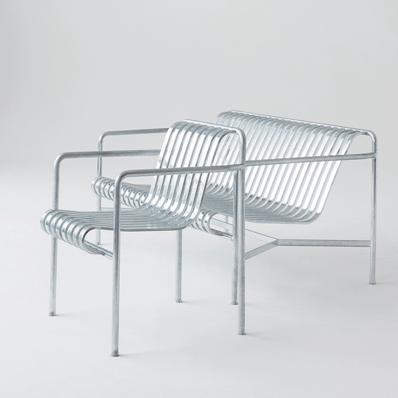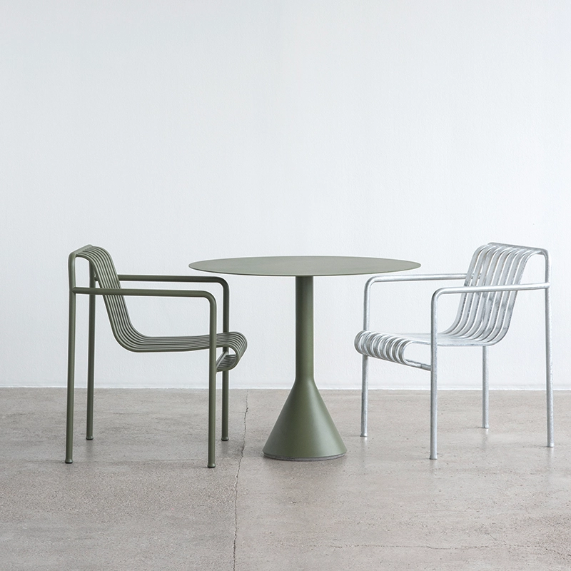 Palissade est une collection de mobilier d'extérieur dessinée par Ronan et Erwan Bouroullec pour la marque Hay. La série est composée d'une large gamme de mobilier, dans laquelle toutes les pièces partagent le même principe de conception. Elle comprend des chaises, petits fauteuils, fauteuils lounge, tabourets, tables et bancs. Spécialement conçues pour un usage extérieur, ces pièces sont visuellement légères mais robustes dans leur réalisation. Inspirée par des meubles classiques, la collection trouve son originalité dans les détails. Bien que conçus en acier, ces meubles outdoor sont confortables simplement grâce à leur design. Chaque pièce est disponible en vert olive, gris clair ou anthracite et s'intègre très bien dans un environnement naturel ou urbain. Avec Palissade, les frères Bouroullec ont imaginé une collection de mobilier outdoor durable qui s'associe facilement à tous les styles : un futur Classique du design !