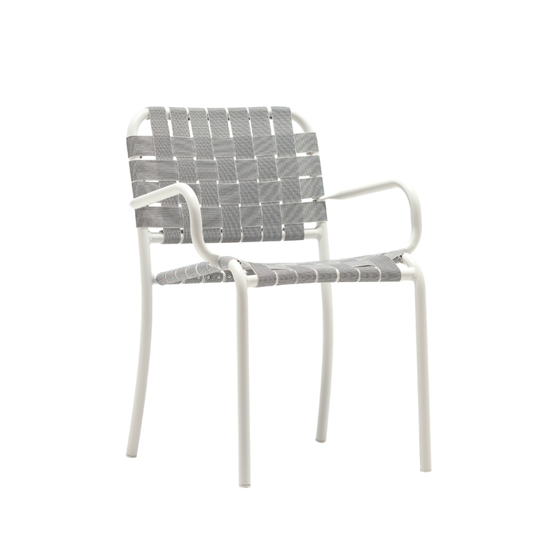 Chaise extérieur Petit fauteuil INOUT 824 Blanc/ sangles grises GERVASONI