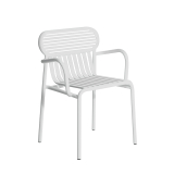 Avec Week-End, la marque française Petite Friture, pose son regard singulier sur l’été et propose avec le Studio Brichet-Ziegler une approche graphique et contemporaine du mobilier de jardin. Celle-ci se joue d’un rythme de bandes horizontales et verticales posées avec habileté sur une structure aux lignes fortes. Les bandes de ce petit fauteuil qui caractérisent la collection Week-End éditée par Petite Friture, sont réalisées dans des feuilles d’aluminium découpées au laser en une seule pièce et non en lattes assemblées, permettent la suppression de vis ou de soudures inconfortables. Le travail des lattes horizontales et verticales comme des rayures, souligne les pleins et les vides, affirmant l’identité de la collection. La collection Week-End est une gamme de mobilier outdoor complète. Les couleurs précises sélectionnées pour cette collection marquent seules ou en combinaison les lignes d’horizon d’un balcon, d’une terrasse ou d’un jardin. Ce petit fauteuil est disponible en plusieurs couleurs comme le noir, jaune, vert jade … La mise en couleurs de la collection Week-end, de Petite Friture, en peinture poudre époxy anti-UV grainée garantit un maintien impeccable des teintes au cours du temps. Le petit fauteuil design Week-End proposé par Petite Friture a été conçu avec l’obsession de tirer le meilleur parti des matériaux et des techniques de réalisation à la disposition des designers. Réalisée en aluminium, matériau sélectionné pour sa légèreté et sa résistance aux intempéries, la collection Week-End allie confort esthétique et sens pratique. En effet, cette collection est résolument pensée autour d’une utilisation pratique car toutes les assises sont empilables.