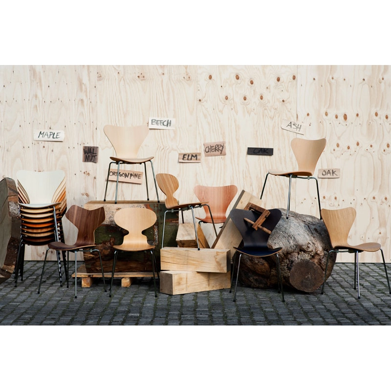 La chaise Fourmi d'Arne Jacobsen est une icône qui ressemble un peu à la forme d'une fourmi avec la tête levée. Sa forme élancée masque sa force.Initialement, Arne Jacobsen dessina les chaises Fourmi pour la cantine du Novo Nordic, un laboratoire pharmaceutique Danois en 1952. Aujourd'hui la chaise Fourmi est une des icônes dominantes de la collection Fritz Hansen. Bien que les formes soient minimalistes, la Fourmi est une chaise extrêmement confortable. C'est une chaise empilable montée sur un piétement à quatre pieds en tube d'acier inoxydable satiné. La coque est faite de placage moulé sous pression - sept couches de placage intérieur et deux couches de placage extérieur, à l'avant et à l'arrière de la coque.