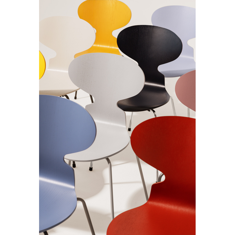 La chaise Fourmi d'Arne Jacobsen est une icône qui ressemble un peu à la forme d'une fourmi avec la tête levée. Sa forme élancée masque sa force.Initialement, Arne Jacobsen dessina les chaises Fourmi pour la cantine du Novo Nordic, un laboratoire pharmaceutique Danois en 1952. Aujourd'hui la chaise Fourmi est une des icônes dominantes de la collection Fritz Hansen. Bien que les formes soient minimalistes, la Fourmi est une chaise extrêmement confortable. C'est une chaise empilable réalisée en bois de chêne et montée sur un piétement à quatre pieds en tube d'acier inoxydable satiné. La coque est faite de placage moulé sous pression - sept couches de placage intérieur et deux couches de placage extérieur, à l'avant et à l'arrière de la coque. Le placage intérieur est en hêtre.