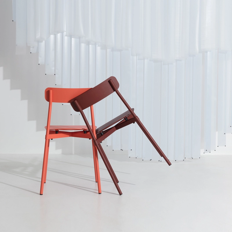 La chaise Fromme, éditée par Petite Friture, est une chaise design en métal se distinguant par ses lignes pures et son caractère unique : les absorbeurs placés sous le siège donnent une flexibilité douce et très confortable à la chaise. Le designer de la chaise Fromme est Tom Chung, un designer industriel canadien et indépendant. Ce créateur s’est associé à Petite Friture pour cette collection très inspirée du cyclisme. En effet, cycliste affirmé, Tom Chung avait l’habitude de gravir la montagne Fromme à l’extérieur de Vancouver et était fasciné par la performance technique de son vélo. Ce nouvel ajout à la gamme de produits avant-gardistes de Petite Friture prouve une fois de plus que la marque donne sa chance aux jeunes créateurs et leur fait confiance pour créer des pièces clés pour ses collections. Empilables et utilisables en extérieur, ces chaises au design minimaliste et graphique s’intégreront dans tous les styles d’intérieurs et d’extérieurs. Véritable poids plume (seulement 4kg), la chaise Fromme est d’une solidité à toute épreuve grâce notamment à un assemblage spécifique et très technique des différentes parties. La forme légèrement incurvée de l’assise ainsi que le plan incliné situé sur le devant de cette dernière augmentent encore le confort.