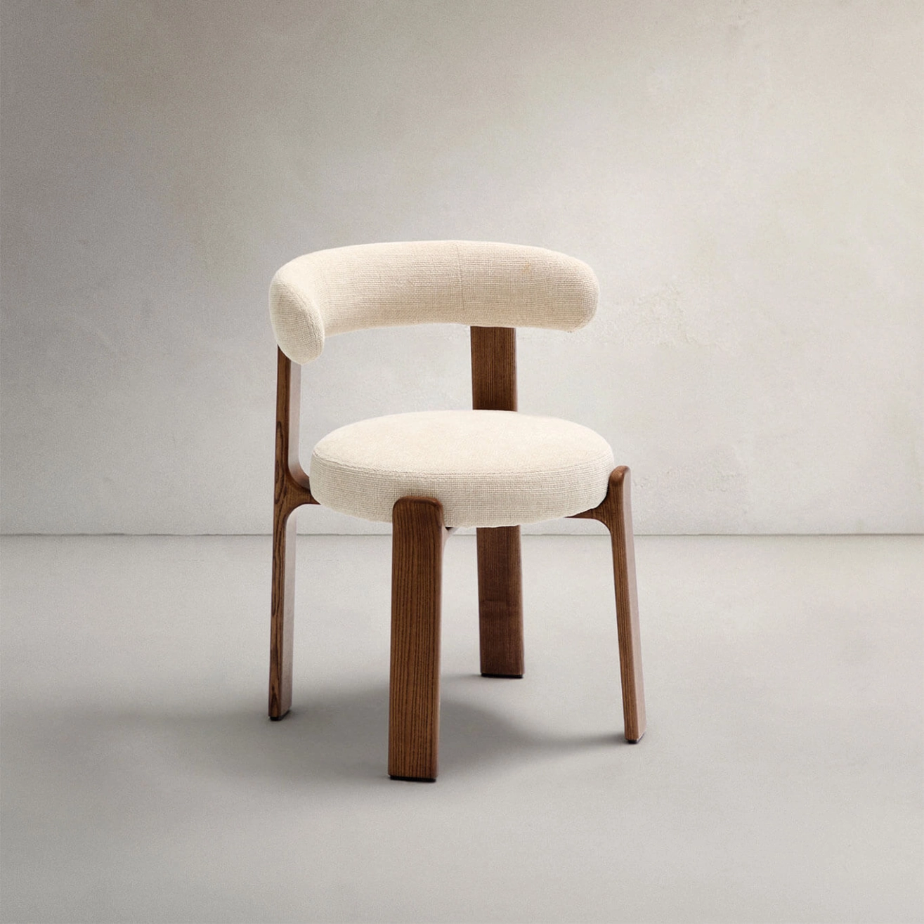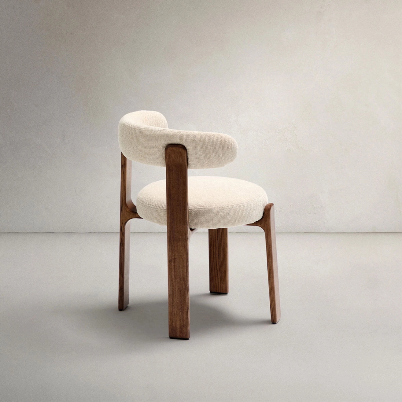 Structure en frêne finition noyer, assise et dossier revêtement chenille beige