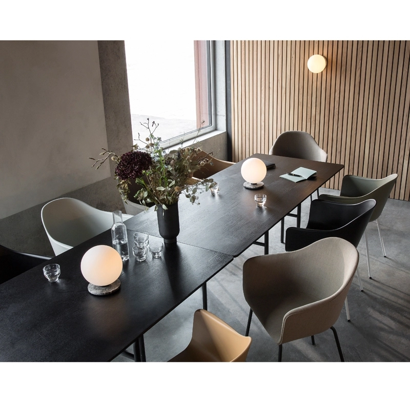 Harbour a été créée au départ pour Menu Space à Copenhague, un espace hybride qui combine bureau, salle d'exposition, café, co-working ainsi que qu'un espace événements. Sa coque en polypropylène est renforcée en fibre de verre et équipée d'un piètement à quatre pieds en acier thermo-laqué, en chêne massif ou un piètement central pivotant. Elle promet ainsi une stabilité et durabilité imbattable. La coque combinée à l'armature forment une belle chaise équilibrée, confortable et solide.