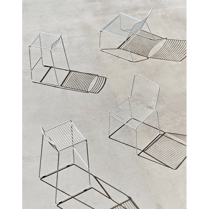 Pour sa collection d'assises Hee Welling est parti d'une base de sièges très simples qu'il perfectionne dans chaque détail, en améliorant la conception et en simplifiant les formes. Il commence par créer une chaise légère aux lignes légères et intemporelles qui lui permettent de s'intégrer dans tous les types d'espaces. Le siège possède une silhouette ludique sans prendre le dessus sur la fonctionnalité. La chaise et le tabouret de bar Hee sont recouverts d'une peinture spécialement conçue pour l'extérieur, résistante aux intempéries, permettant de les utiliser aussi bien dans un jardin qu'à l'intérieur de la maison dans la salle à manger ou la cuisine.