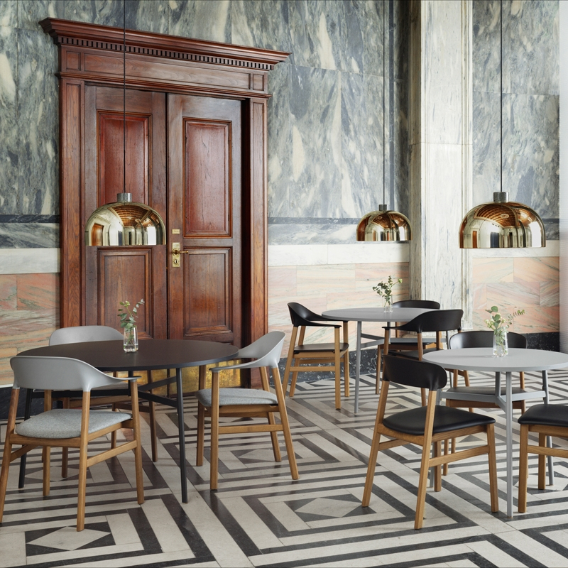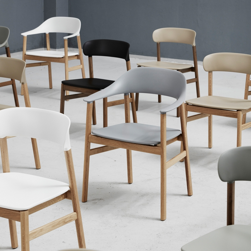 Herit, qui est l'abréviation du mot héritage, reflète l'amour de Simon Legald pour la tradition du design danois. Cette gamme de sièges s'harmonise parfaitement avec la volonté du designer de concevoir une chaise polyvalente et solide qui associe différentes époques du design de ses origines tout en suivant la philosophie de Normann Copenhagen. Mais