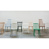 La chaise J104 de Jørgen Bækmark a été conçue comme un croisement entre une chaise de salle à manger et un fauteuil. Edité par Hay, ce classique est fabriqué en hêtre avec une finition naturelle ou dans plusieurs coloris avec une laque à base d'eau.
