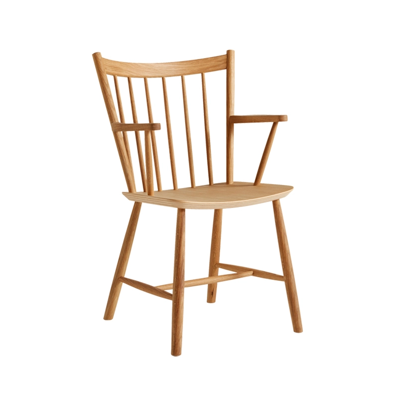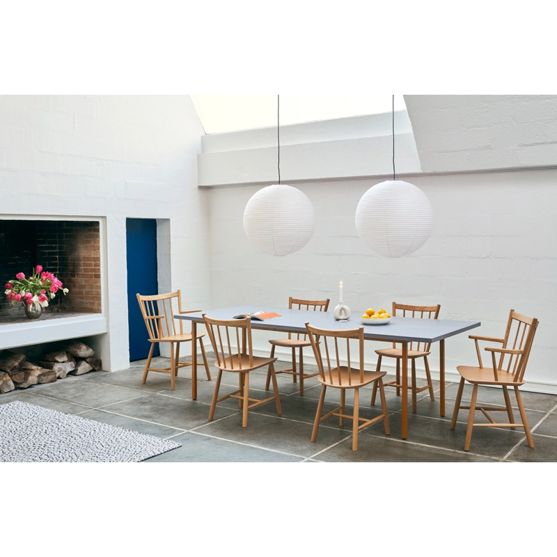 Le petit fauteuil J42, dessiné par Børge Mogensen et réédité par Hay, est doté d'accoudoirs, d’un dossier légèrement incliné et de tiges largement espacées créant un design épuré qui offre une qualité intemporelle. La chaise à accoudoirs J42 combine aspect chaleureux naturel, confort et durabilité. Elle est disponible en hêtre naturel, en hêtre laqué dans différentes couleurs, en chêne laqué naturel ou chêne huilé. La chaise J41 Hay s'intègre à tous les styles d'espaces aussi bien dans la cuisine que dans le salle à manger.