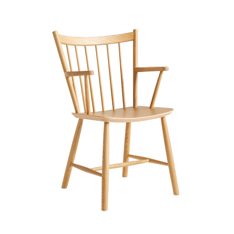 Le petit fauteuil J42, dessiné par Børge Mogensen et réédité par Hay, est doté d'accoudoirs, d’un dossier légèrement incliné et de tiges largement espacées créant un design épuré qui offre une qualité intemporelle. La chaise à accoudoirs J42 combine aspect chaleureux naturel, confort et durabilité. Elle est disponible en hêtre naturel, en hêtre laqué dans différentes couleurs, en chêne laqué naturel ou chêne huilé. La chaise J41 Hay s'intègre à tous les styles d'espaces aussi bien dans la cuisine que dans le salle à manger.