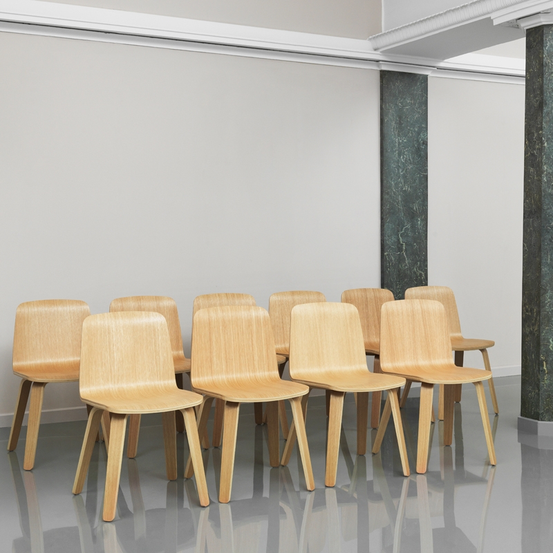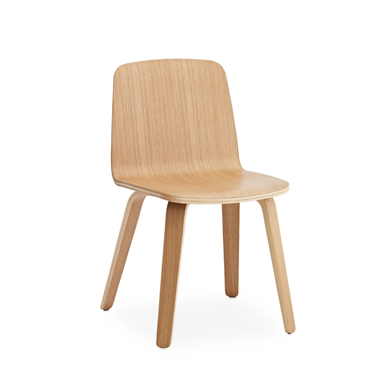 Créée par Iskos-Berlin, Just est une chaise sobre et discrète, mais au caractère et à la personnalité bien affirmés. Cette version en chêne est dotée de pieds en bois moulé, dont les courbes résolues reprennent la forme du siège et viennent s'intégrer à l'assise moulée caractéristique de la chaise. Leur forme incurvée vers l'avant confère à cette dernière son allure pleine de charme, chaleureuse et solide.