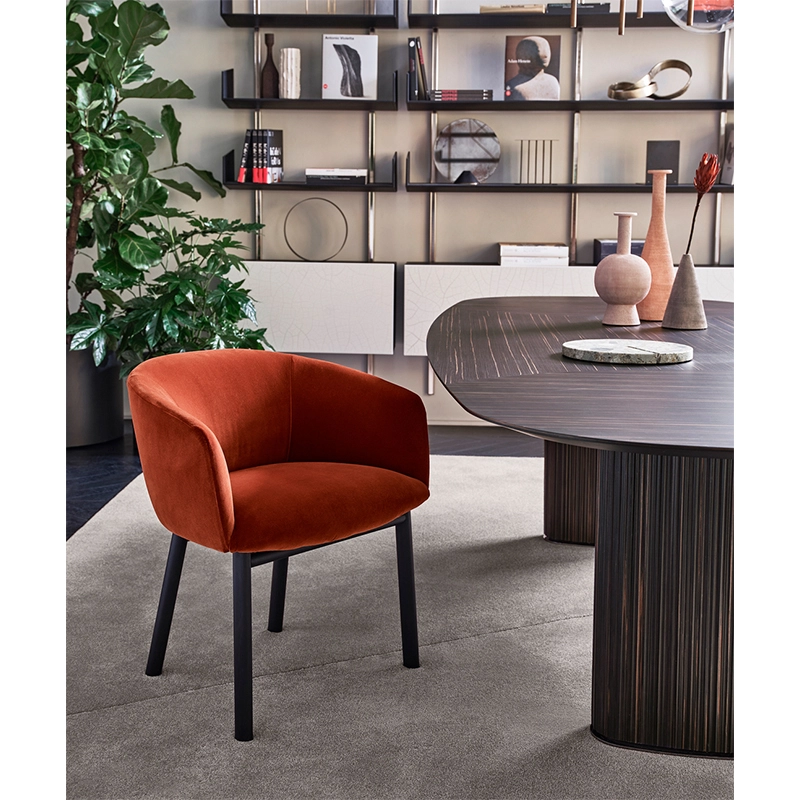 Le petit fauteuil Livrette est signé Federica Biasi pour la marque Gallotti&Radice. Il est doté d'une structure interne en métal et d'une base en frêne massif laqué noir à pore ouvert. L'assise et le dossier enveloppant sont rembourrés et revêtus de tissu ou cuir. rembourrage en mousse de polyuréthane en densités variables et fibre de polyester assure un confort optimal.
