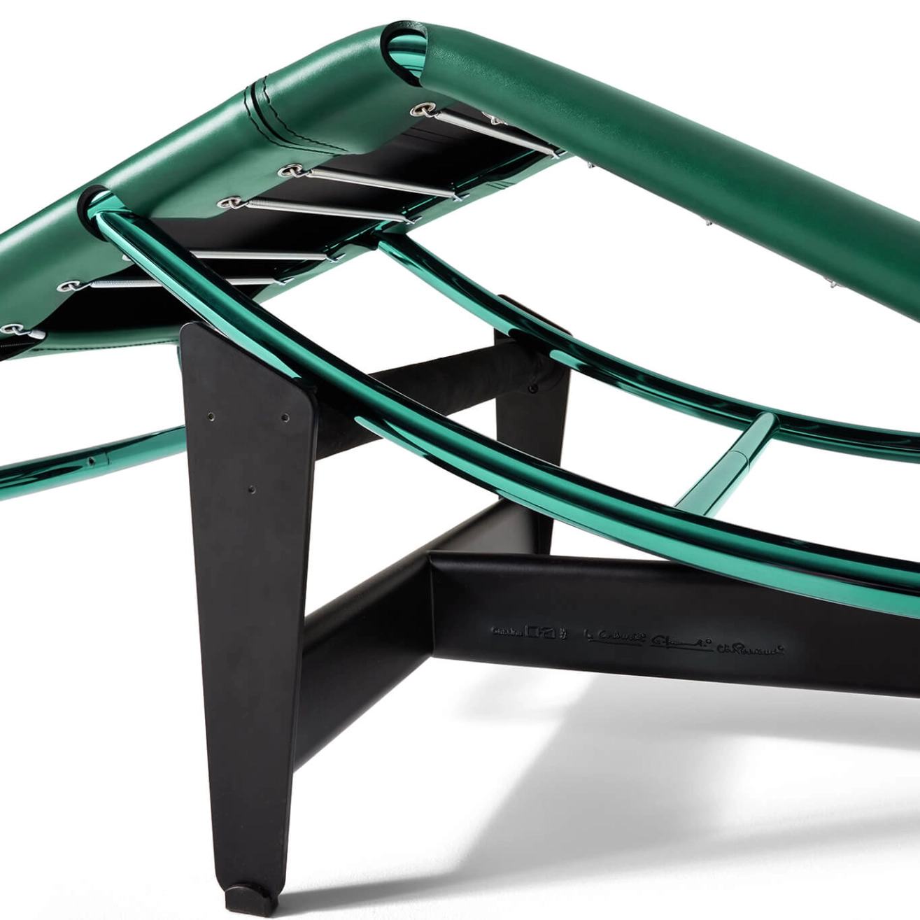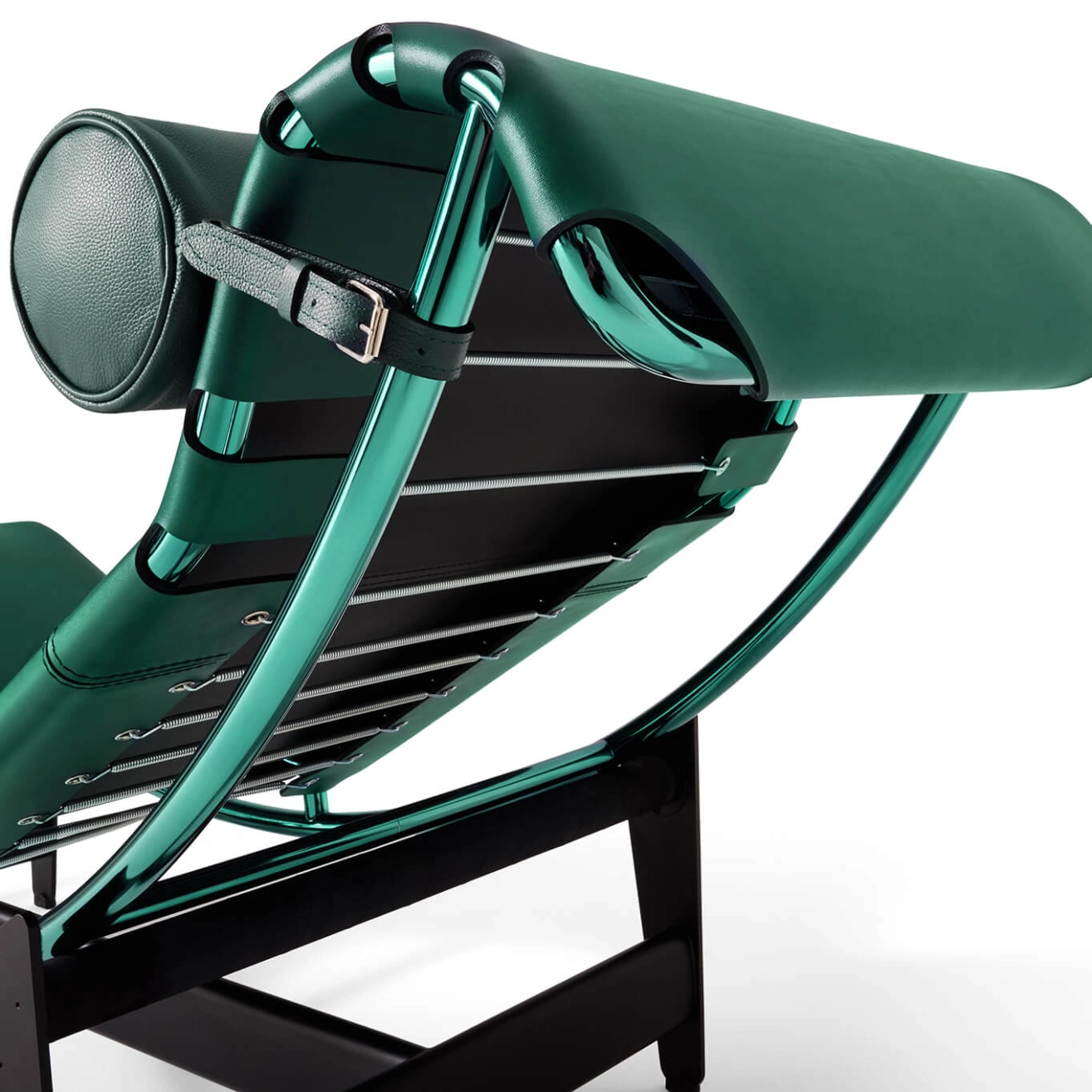 Habillée d’un vert profond et apaisant, la chaise longue 60 apporte une note végétale subtile à l’espace, évoquant la sérénité et l’équilibre. Cette teinte raffinée dialogue avec la pureté des lignes du design, renforçant le caractère à la fois contemporain et intemporel de la pièce.