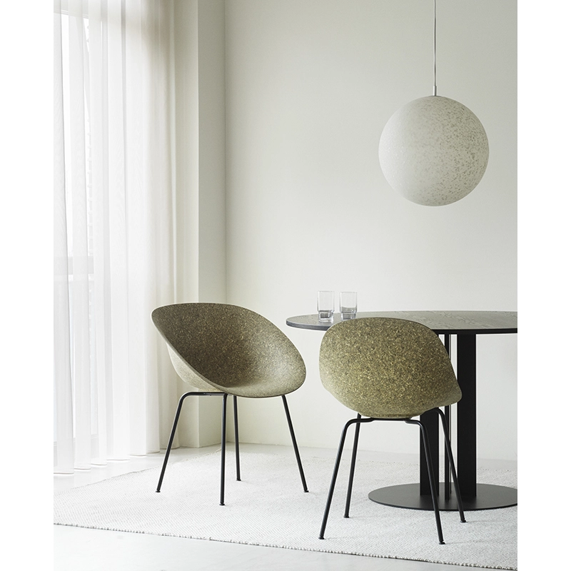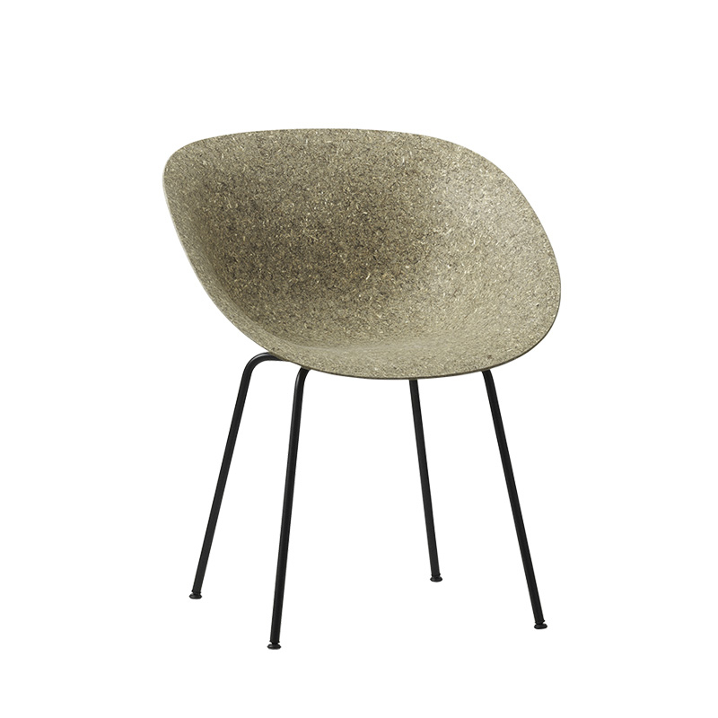 Ainsi, Mat de Normann Copenhagen est un petit fauteuil minimaliste, mais doté d’une approche inédite en matière de matériaux. Confortable et ergonomique, la collection comprend de nombreux modèles de chaises de salle à manger et de tabourets de bar, disponibles avec ou sans capitonnage. Exploitant les propriétés naturelles de cette plante, la coque est principalement réalisée en fibres de chanvre, scellées par un liant entièrement recyclable. Le petit fauteuil Mat se décline également en une version emblématique incorporant de la zostère, une autre ressource naturelle dotée de nombreuses excellentes qualités et d’une esthétique distinctive. Les coques sont montées sur un piètement simplissime en acier thermolaqué, disponible en deux coloris.
