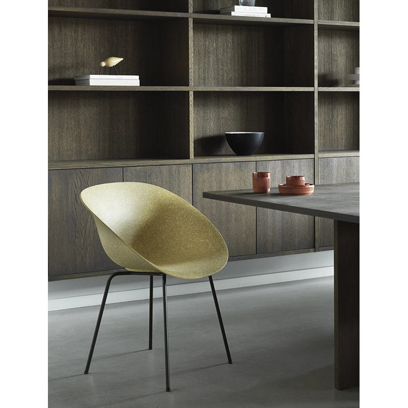 Ainsi, Mat de Normann Copenhagen est un petit fauteuil minimaliste, mais doté d’une approche inédite en matière de matériaux. Confortable et ergonomique, la collection comprend de nombreux modèles de chaises de salle à manger et de tabourets de bar, disponibles avec ou sans capitonnage. Exploitant les propriétés naturelles de cette plante, la coque est principalement réalisée en fibres de chanvre, scellées par un liant entièrement recyclable. Le petit fauteuil Mat se décline également en une version emblématique incorporant de la zostère, une autre ressource naturelle dotée de nombreuses excellentes qualités et d’une esthétique distinctive. Les coques sont montées sur un piètement simplissime en acier thermolaqué, disponible en deux coloris.