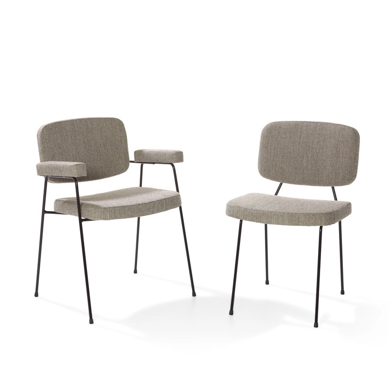 Epurée et élégante, Moulin est une création du designer Pierre Paulin. Initialement comprise dans la collection de Thonet, elle est aujourd'hui éditée par Artifort. Le nom de ce siège provient de la « Rue Jean Moulin » où elle a vu le jour, en 1954. La chaise Moulin revêt un design sobre et élégant, sans fioriture : son assise rembourrée et recouverte de tissu repose sur un châssis élancé en métal peint. Séduisant par sa silhouette simple et son look vintage, Moulin est une pièce design idéale pour agrémenter la décoration d’une salle à manger, à plusieurs autour d’une table. Moulin est disponible avec ou sans accoudoirs.