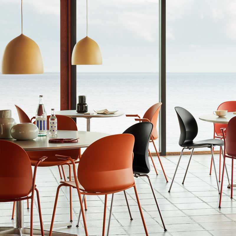 N02 Recyclé est une chaise solide et empilable, conçue par le studio Japonais Nendo, qui a puisé son inspiration dans le pli d'une feuille de papier posé sur le bureau du designer. L’image du papier plié se traduit par un pli dans la coque de la chaise, permettant à la forme de soutenir à la fois le haut et le bas du dos. La coque de la chaise est en plastique circulaire, ce qui signifie qu'elle est faite de plastique recyclé et recyclable par la suite. Le plastique de la chaise N02 Recyclé de Fritz Hansen provient de déchets ménagers, plastiques collectés, traités et recyclés en Europe centrale. Les options de pieds et de coque font de N02 une solution idéale pour une grande variété d'environnements contractuels tels que les salles de réunion, les cantines et les espaces de présentation. Les bords souples rendent cette chaise extrêmement confortable, même lors d'une assise prolongée.
