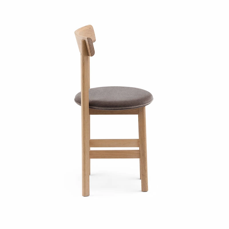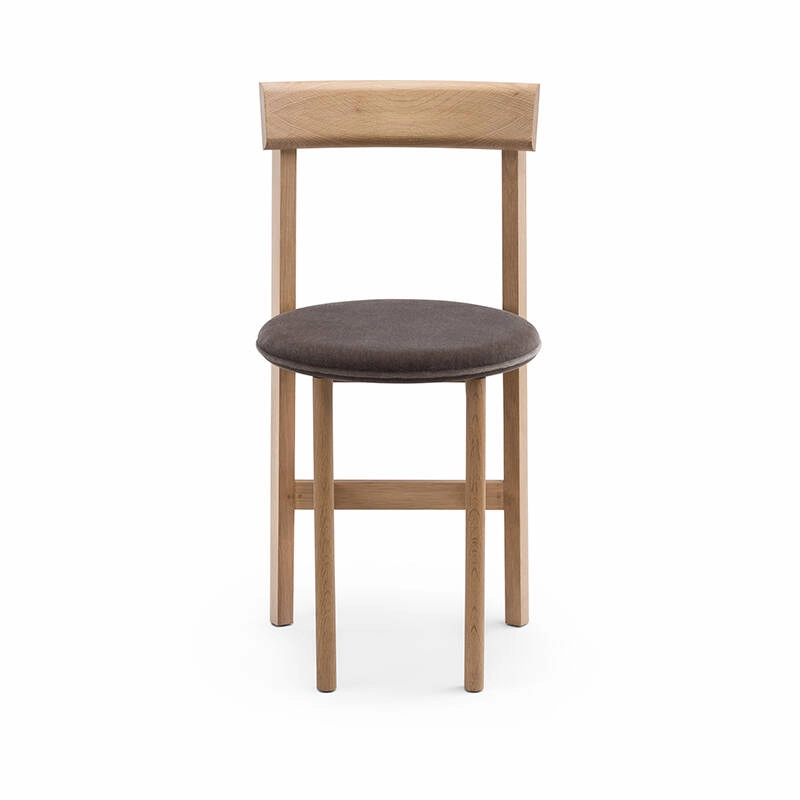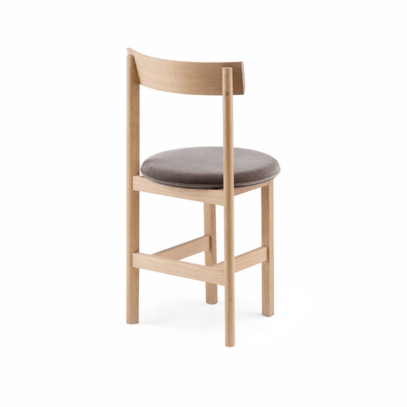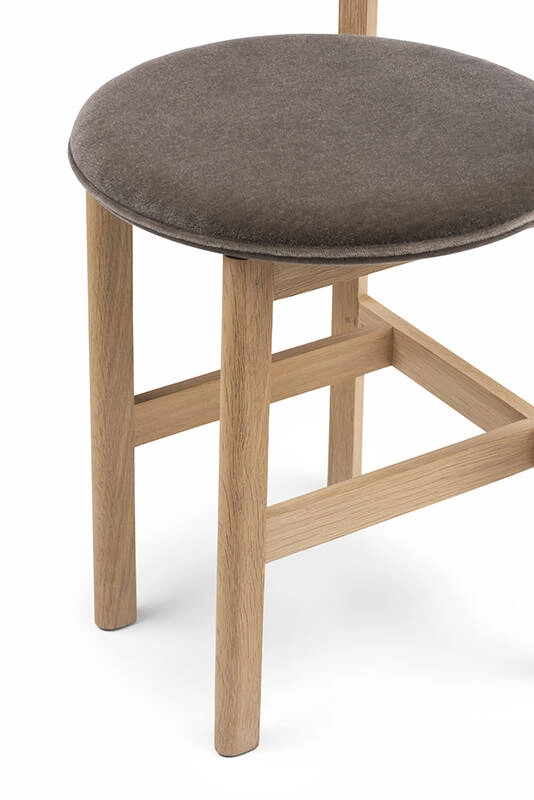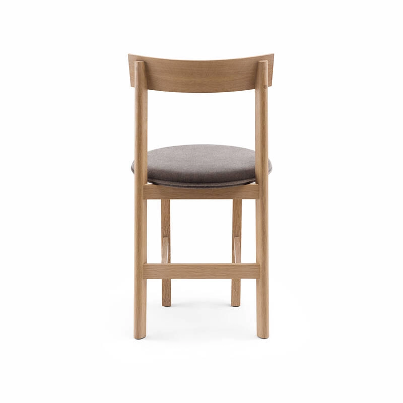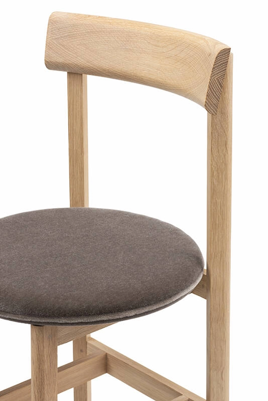 Petit de De La Espada est une chaise de salle à manger compacte en bois massif avec une assise rembourrée qui a été spécialement conçue par Neri&Hu dans le cadre de leur design d'intérieur pour le restaurant Papi, à Paris. La chaise, disponible avec 3 ou 4 pieds, répond aux besoins des petits espaces ou fait de la place pour plus d'invités autour d'une table.