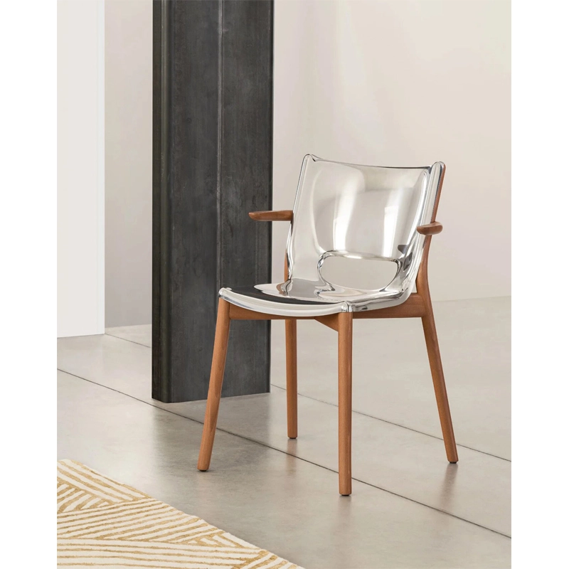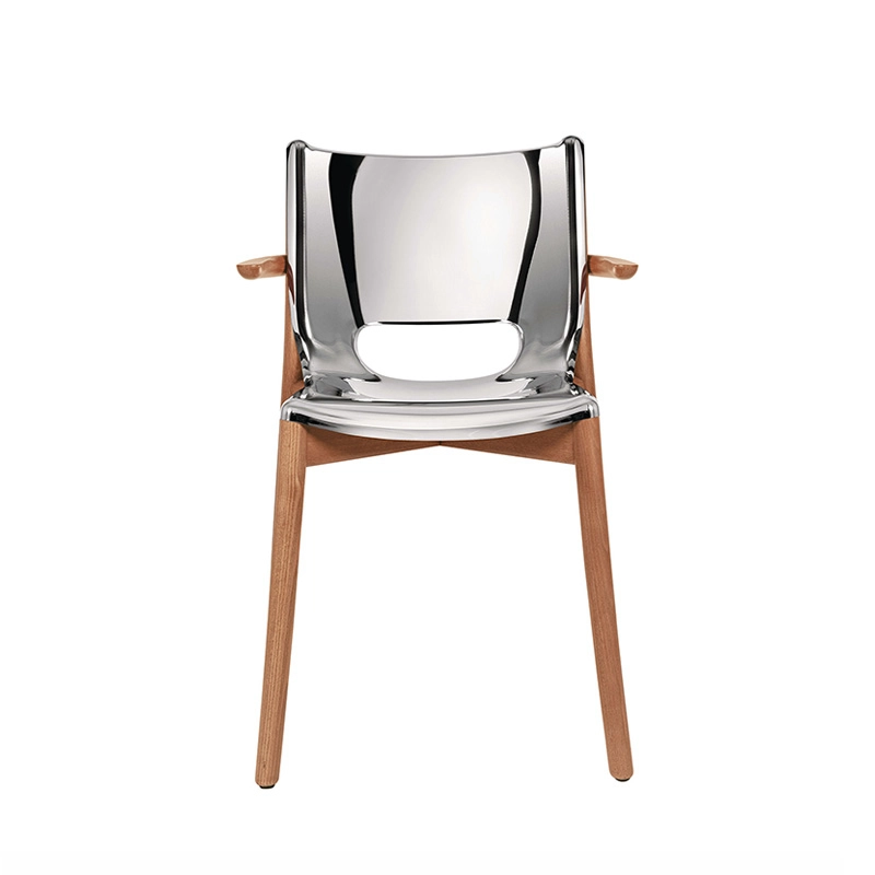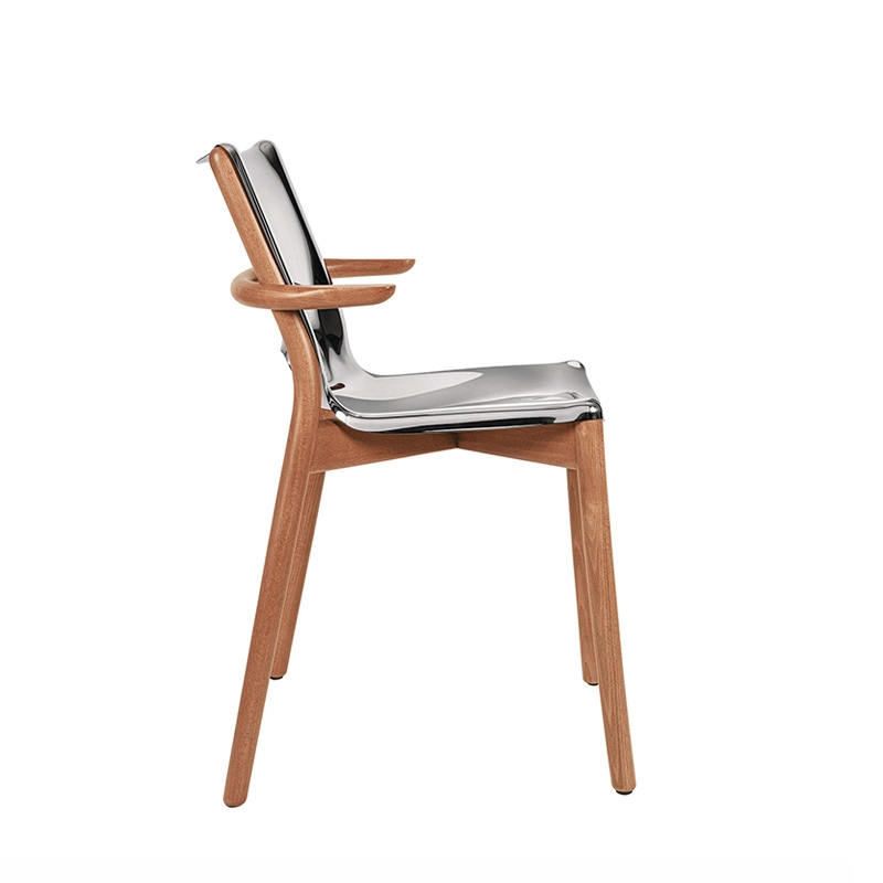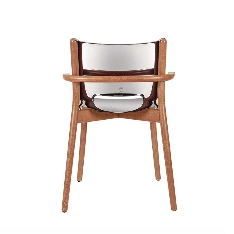 Chaise POÊLE avec accoudoirs Inox brillant/ hêtre brun ALESSI