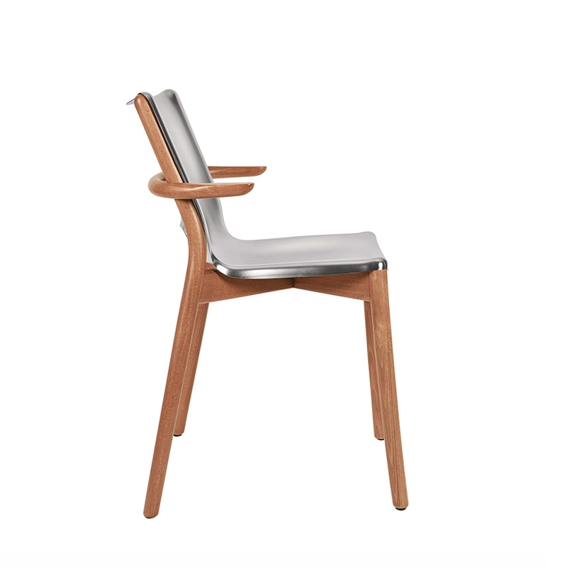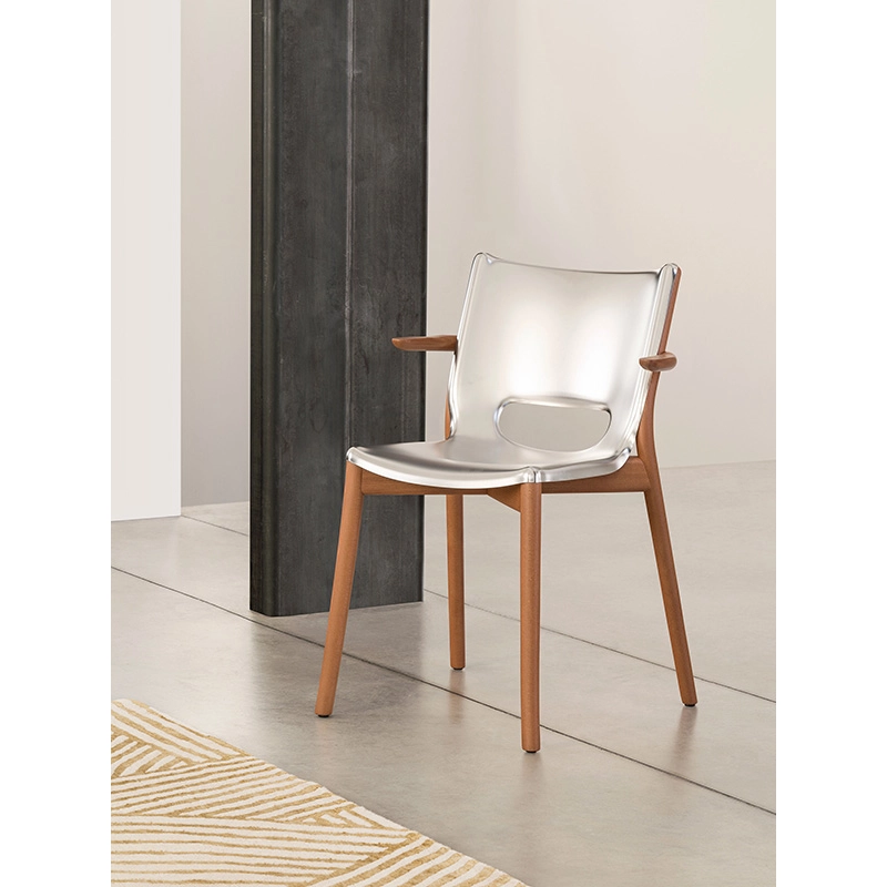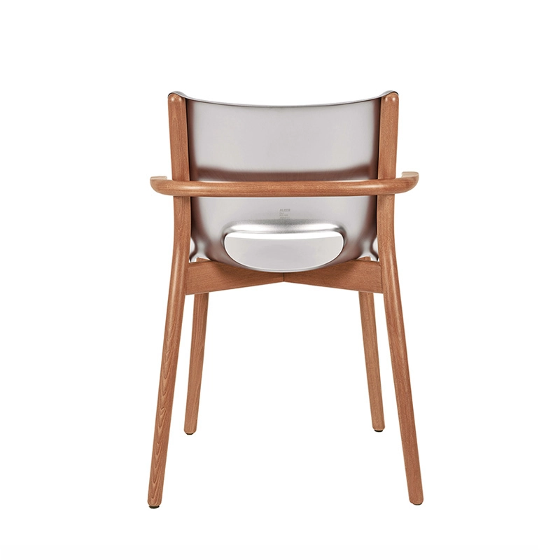 Chaise POÊLE avec accoudoirs Inox satiné/ hêtre brun ALESSI