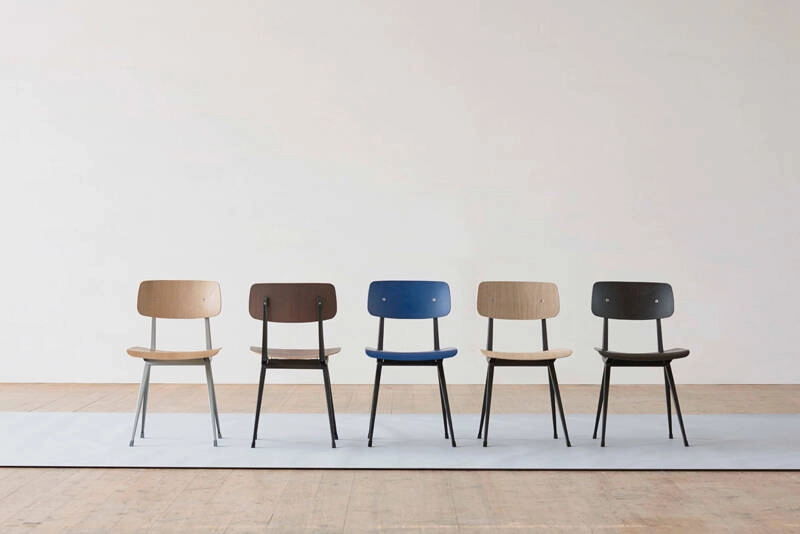 Créée à l’origine dans les années 50 par Friso Kramer et Wim Rietveld alors qu’ils travaillaient chez Ahrend, la chaise Result fait partie des collections relancées par ce dernier en collaboration avec la marque Hay. Considérée comme une création novatrice, la chaise Result propose une utilisation innovante de la tôle d’acier sur un produit à la forme organique et contemporaine. Dotée d’une fine base en tôle d’acier, Result possède un siège et un dossier fabriqués en chêne qui lui confère une résistance maximale tout en conservant de la légèreté. Disponible différentes finitions de bois et de couleurs de base, la chaise Result de Hay se caractérise par sa construction simple et l’utilisation de matériaux durables et solides.Le résultat est une chaise polyvalente qui s’adapte aisément au sein de nombreux espaces publics et privés.