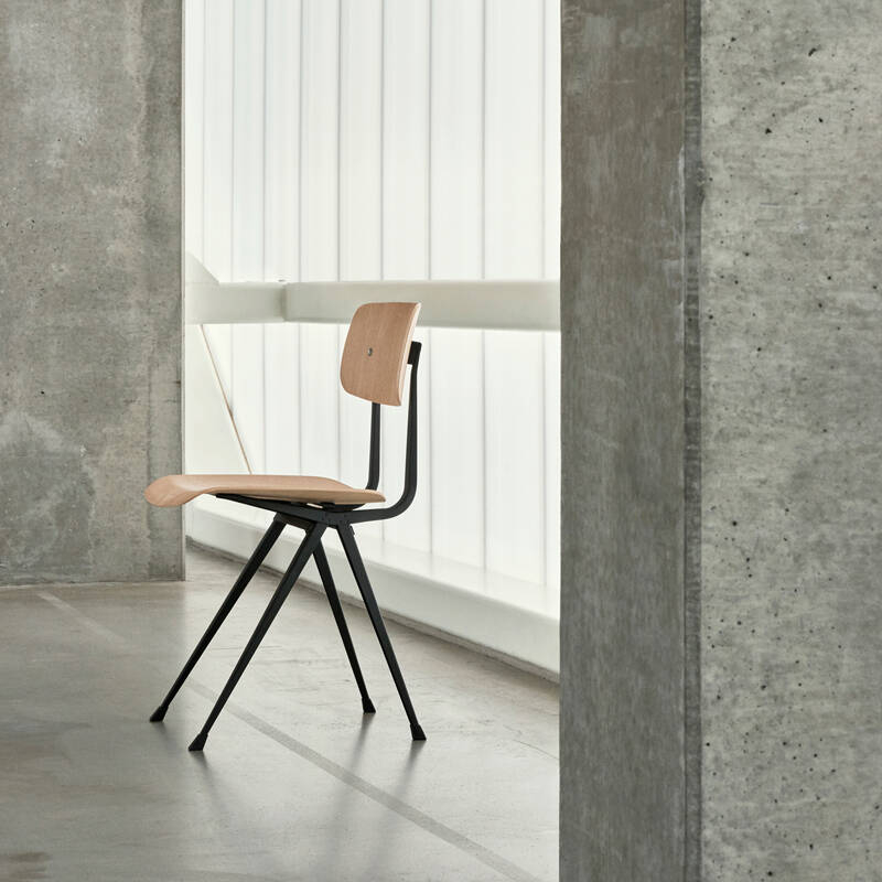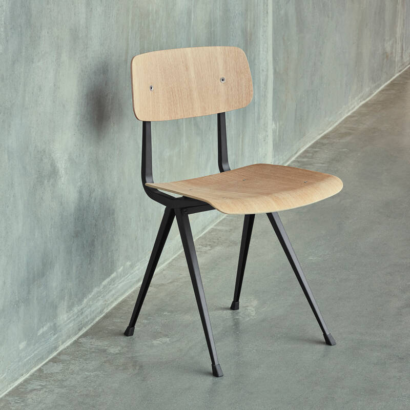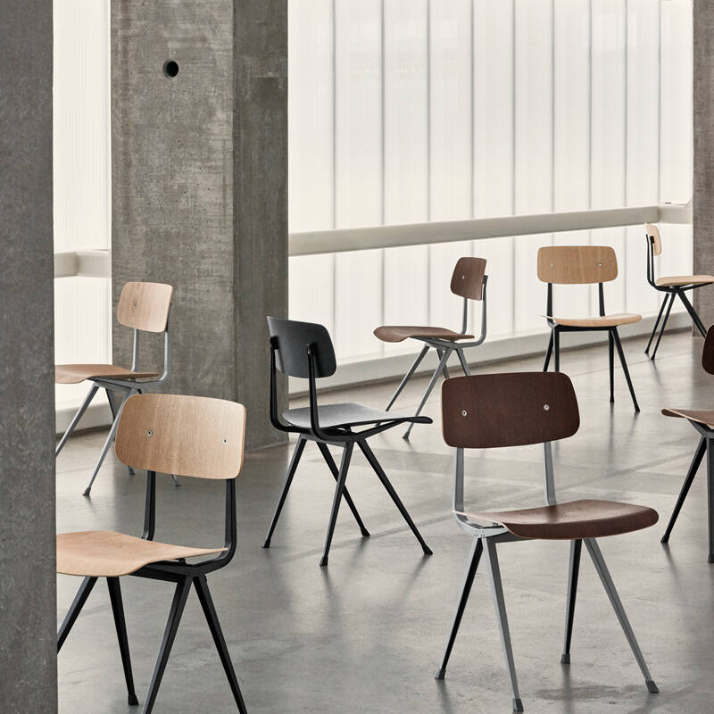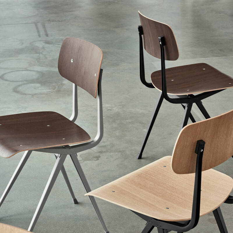 Result possède un siège et un dossier fabriqués en chêne qui lui confère une résistance maximale tout en conservant de la légèreté. Disponible différentes finitions de bois et de couleurs de base, la chaise