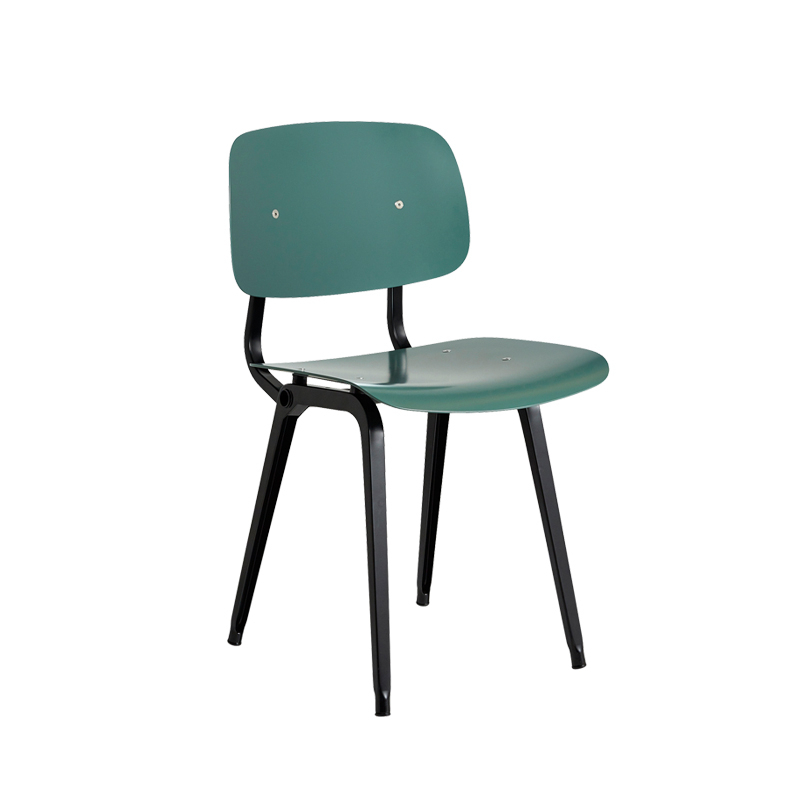 Revolt incarne son style minimaliste distinctif ; une conception révolutionnaire et un choix de matériaux qui utilise un cadre en tôle d'acier plié au lieu d'un cadre tubulaire traditionnel. Reproduite aujourd'hui selon le même processus, la chaise conserve la fonctionnalité et la construction résiliente de son précurseur du milieu du siècle, mais dans un choix de matériau durable comprenant un mélange de matériaux recyclés post-consommation et ABS vierge dans différentes options de couleurs. Dynamique et flexible, la chaise ergonomique de