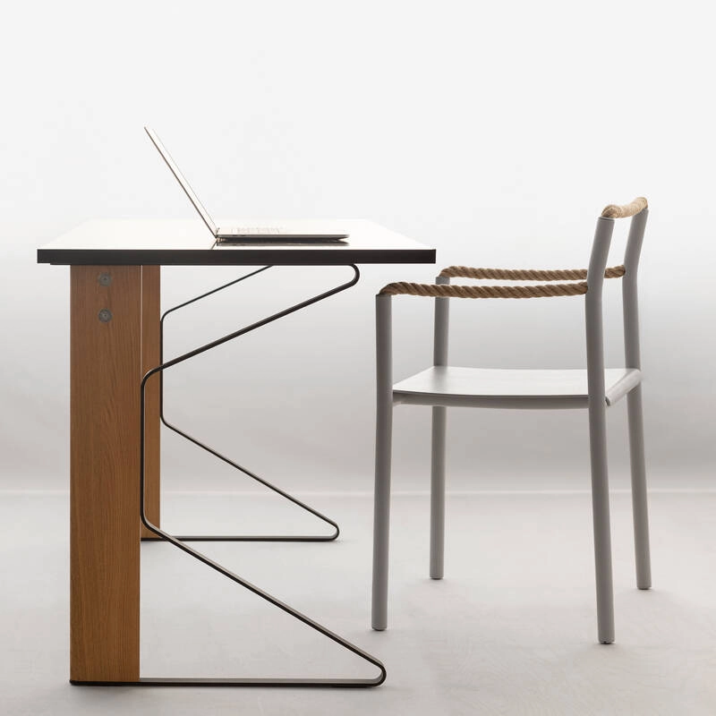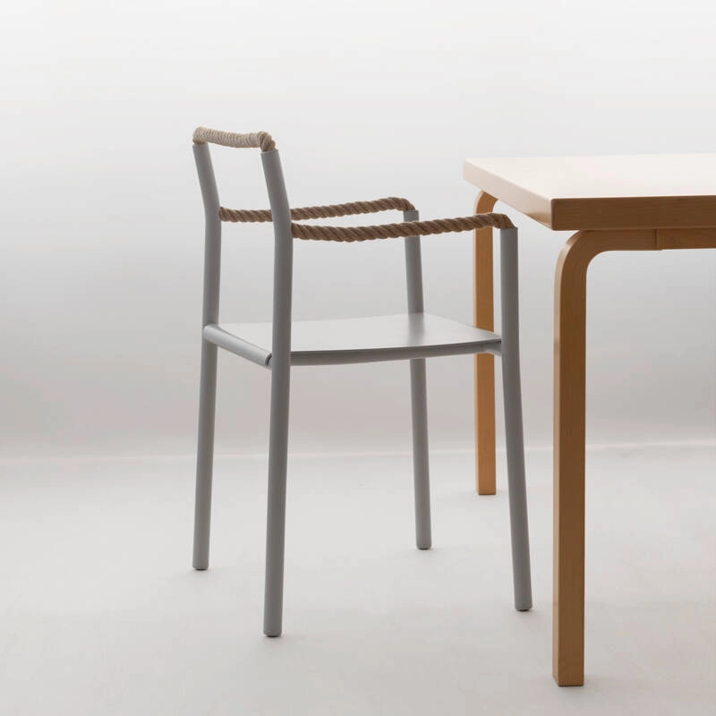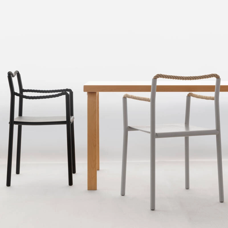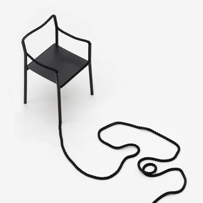 Silhouette plus que bloc solide, la chaise Rope est un dessin au trait traduit en trois dimensions, un geste artistique simple qui prend vie dans l’espace. Dessinée par Ronan & Erwan Bouroullec et éditée par Artek, la chaise Rope est une synthèse de contrastes : une réalisation technique sophistiquée et une expression créative, une structure robuste et des éléments flexibles, des tubes rigides et une corde souple. Créée pour une utilisation marine, la corde est au cœur du confort inattendu de la chaise Rope. La corde permet à la chaise de s’adapter à celui qui est assis dessus. Là où d’autres chaises dictent une manière spécifique de s’assoir, la chaise Rope invite à une créativité dans la posture, encourageant la dynamique et les changements de position. Quand la personne assise se lève, la chaise conserve la trace du corps, l’empreinte de l’utilisateur qui co-définit sa forme.