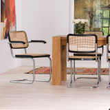 S 64 avec accoudoirs sont sans aucun doute les classiques en acier tubulaire les plus connus. Leur popularité vient de l’alliance réussie du neuf et de l’ancien avec, d’une part, la tradition de