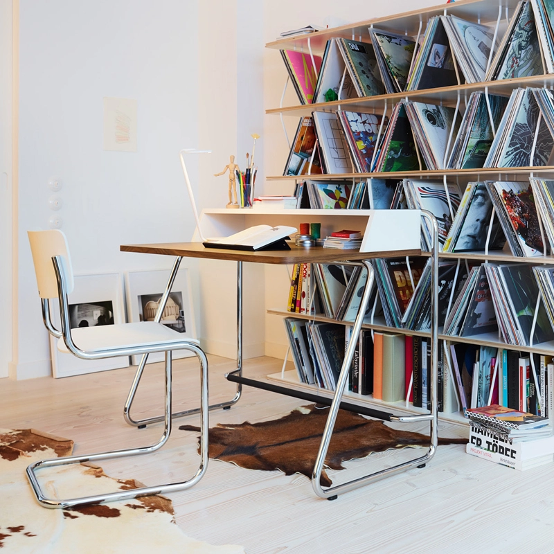 En 1931, Mart Stam révolutionne un concept suivi pendant des siècles en débarrassant les chaises de leurs pieds arrière. Cette idée sera par la suite développée et affinée, donnant naissance à un objet parfait pour les environnements où sobriété et qualité sont de mise. Ce qui compte pour Mart Stam lorsqu’il dessine des meubles, c’est l’utilité et l’aspect économique du meuble, que ce soit sur le plan esthétique ou de la réduction des matériaux. Le résultat est une chaise à la forme rectiligne, dotée d’une construction épurée et d’un confort d’assise amélioré. Son modèle le plus minimaliste est la chaise à piètement luge S 43, pour laquelle il combine une structure en acier tubulaire à un dossier et une assise en bois moulé. La clarté et la sobriété de ce siège à piètement luge reflètent parfaitement l’esprit de modernité de l’époque. Le droit de propriété artistique pour cette chaise de style rigoureusement cubique sans pieds arrière est aujourd’hui détenu par Thonet. Durable est intemporelle, la chaise S 43 trouve sa place dans de nombreux environnements, privés ou publics.