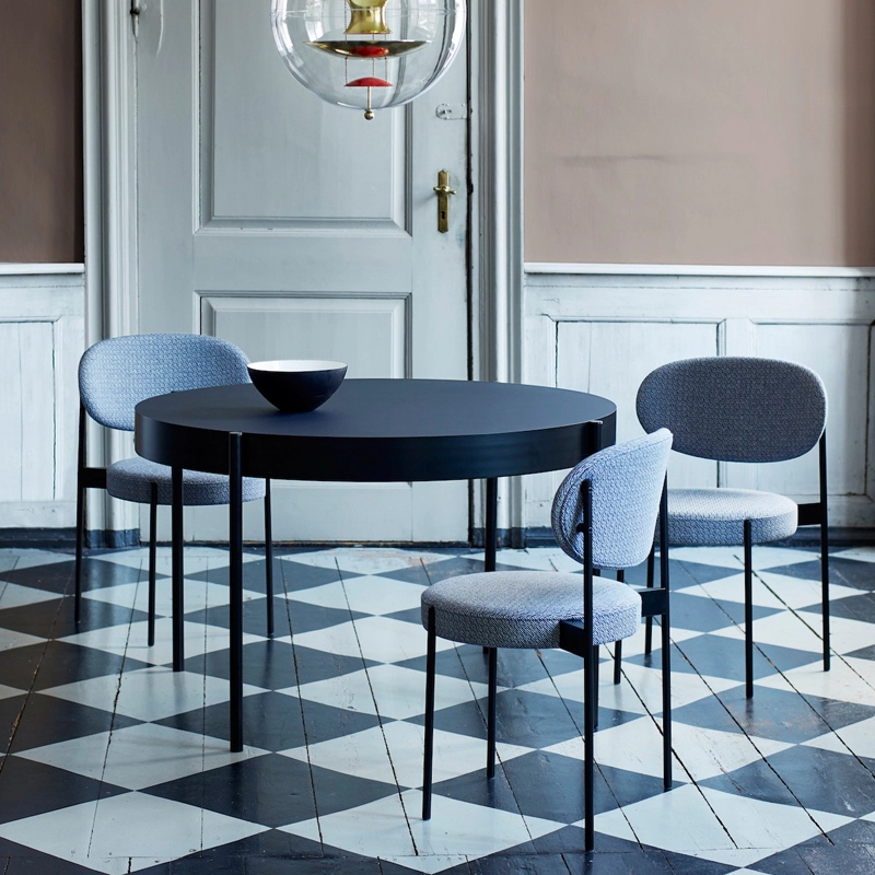 En 2015, Verpan a redécouvert une chaise oubliée dans les Archives Panton. Dévoilée pour la première fois en 1967, elle a été produite pendant très peu de temps. En se basant sur les dessins originaux et les notes de Verner Panton, Verpan a pu imaginer à nouveau ce magnifique design en l’adaptant aux normes modernes. Verner Panton avait dessiné la chaise Series 430 comme une étude ayant pour but de procurer le même confort qu’un fauteuil. Il réussit cela en appliquant un système traditionnel de sangles à l’assise entièrement rembourrée, pour s’adapter au poids du corps. S’ajoute à cela un large dossier enveloppant et une structure légère et élégante montée à l’extérieur de l’assise et du dossier. Empilable, raffinée et confortable, Series 430 est réellement une chaise multifonctions qui s’intègre aussi bien à la maison, dans un restaurant ou un bureau.