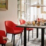 Le fauteuil Softshell créé par Ronan & Erwan Bouroullec pour Vitra est un siège élégant et polyvalent. D'un grand confort, il s'intègre aussi bien dans un espace de conférence que dans un bureau. Ses lignes douces et enveloppantes, et son rembourrage riche et souple lui confèrent à la fois un confort d'excellence et un design pur et agréable. Les pieds du fauteuil sont en polyamide et son revêtement en tissu Plano. Les lamelles verticales disposées dans la coque et cachées sous le revêtement épousent les formes de son utilisateur pour lui assurer un confort d'assise optimal même sur une longue durée. Softshell évoque à la fois convivialité et sérénité, lui permettant d'être utilisé dans les espaces privés, autour d'une salle à manger ou dans des lieux publics.