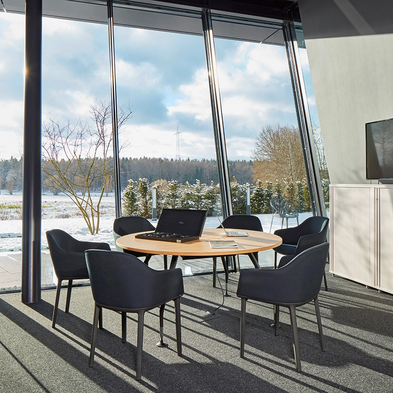 Le fauteuil Softshell créé par Ronan & Erwan Bouroullec pour Vitra est un siège élégant et polyvalent. D'un grand confort, il s'intègre aussi bien dans un espace de conférence que dans un bureau. Ses lignes douces et enveloppantes, et son rembourrage riche et souple lui confèrent à la fois un confort d'excellence et un design pur et agréable. Les pieds du fauteuil sont en polyamide et son revêtement en tissu Plano. Les lamelles verticales disposées dans la coque et cachées sous le revêtement épousent les formes de son utilisateur pour lui assurer un confort d'assise optimal même sur une longue durée. Softshell évoque à la fois convivialité et sérénité, lui permettant d'être utilisé dans les espaces privés, autour d'une salle à manger ou dans des lieux publics.