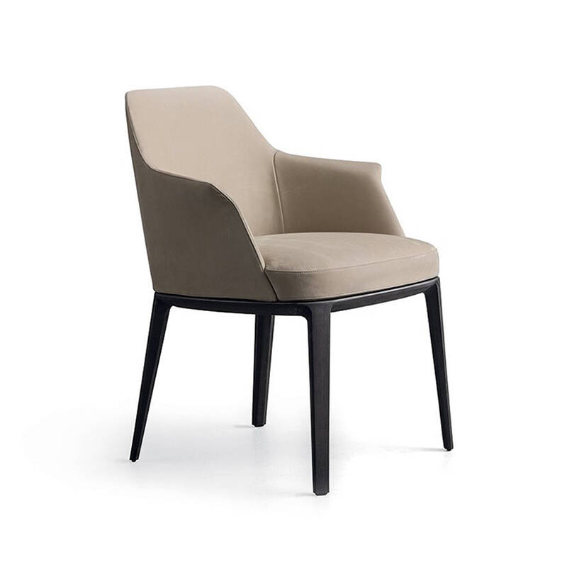 Après la célèbre Grace, voici sa sœur Sophie, dessinée par Emmanuel Gallina pour Poliform. Si son élégante silhouette est similaire à celle de Grace, la chaise Sophie offre une assise rebondie aux dimensions généreuses. Le détail de la conception de l'accoudoir de la chaise Sophie souligne délicatement le concept d'hospitalité, en contraste avec les lignes fines de la structure. Sophie de Poliform est également disponible en version sans accoudoirs. Contactez-nous pour plus d'informations.