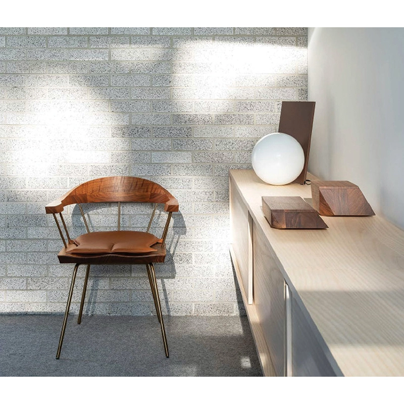 Le petit fauteuil Spindle créé par Craig Bassam pour Bassam Fellows s’inspire de la chaise anglaise Windsor créée au XVIIIe siècle. Cette collection de sièges incarne parfaitement le contraste entre l’ancien et le nouveau. Le petit fauteuil Spindle possède une silhouette fine avec des pieds et des tiges en métal aussi minces que possible. Les différents éléments ergonomiques sont en bois sculpté, donnant l’impression qu’ils sont en apesanteur, grâce à leurs supports fins. Chaque petit fauteuil Spindle est conçu avec un système pivotant avec retour pour une facilité d'utilisation et une apparence soignée, ce qui en fait également une solution très pratique pour les environnements d'accueil.