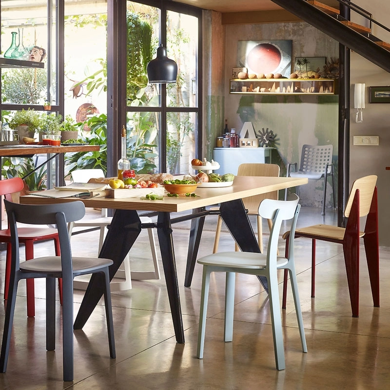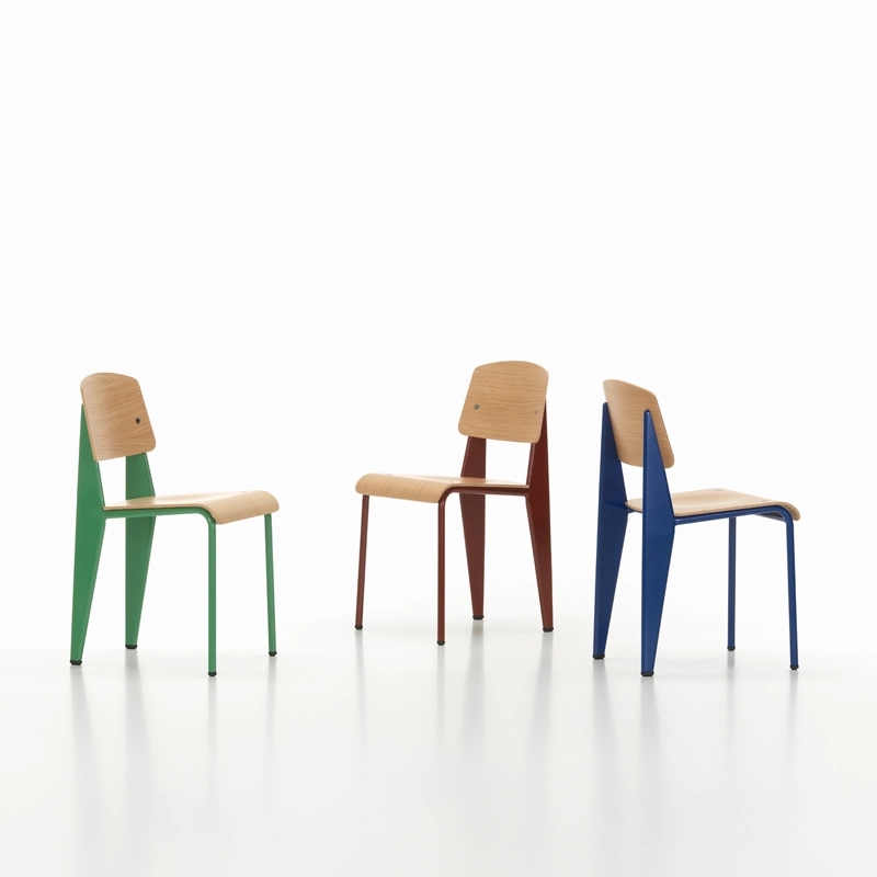 La Standard Chair fait partie des chaises de bureau créées par Jean Prouvé à partir de 1930 dans le cadre de ses recherches pour du mobilier destiné à une collectivité (la Cité Universitaire de Nancy). Ferronnier de formation, il innove alors avec la technique de la tôle pliée qu'il développe dans ses ateliers de Nancy. Constatant que la charge exercée sur une chaise est plus importante au niveau des pieds arrière, il met en œuvre sa technique de tôle pliée sur plusieurs chaises, parmi lesquelles la Standard Chair. Tandis qu'un tube d'acier est suffisant pour les pieds avant, les pieds arrière sont constitués d'un corps creux volumineux qui transmet la charge au sol. Aujourd'hui rééditée par Vitra, cette chaise redevient accessible pour tous ceux qui aiment le mobilier fonctionnel aux formes simples. Elle est parfaite autour d'une table de salle à manger mais aussi comme petite chaise de bureau.
