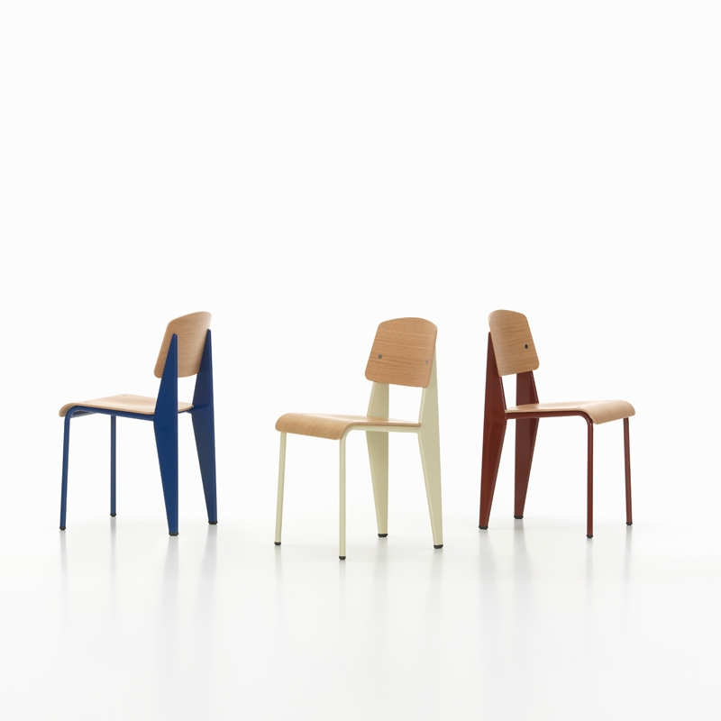 La Standard Chair fait partie des chaises de bureau créées par Jean Prouvé à partir de 1930 dans le cadre de ses recherches pour du mobilier destiné à une collectivité (la Cité Universitaire de Nancy). Ferronnier de formation, il innove alors avec la technique de la tôle pliée qu'il développe dans ses ateliers de Nancy. Constatant que la charge exercée sur une chaise est plus importante au niveau des pieds arrière, il met en œuvre sa technique de tôle pliée sur plusieurs chaises, parmi lesquelles la Standard Chair. Tandis qu'un tube d'acier est suffisant pour les pieds avant, les pieds arrière sont constitués d'un corps creux volumineux qui transmet la charge au sol. Aujourd'hui rééditée par Vitra, cette chaise redevient accessible pour tous ceux qui aiment le mobilier fonctionnel aux formes simples. Elle est parfaite autour d'une table de salle à manger mais aussi comme petite chaise de bureau.