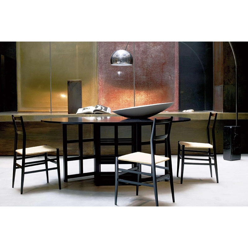 Editée sans interruption depuis 1957, la chaise Superleggera incarne la fusion entre la recherche du designer italien Gio Ponti et l'innovation avancée de la maison Cassina. Superleggera est une icône de la modernité et du raffinement artisanal. La chaise Superleggera tient son nom de sa légèreté exceptionnelle, obtenue grâce à l'utilisation du frêne, un bois léger et élastique qui compose sa structure, et à ses pieds fins de section triangulaire. Le frêne est associé à un cadre d'assise en hêtre, qui est quant à lui plus compact et résistant. Les éléments en bois de la chaise Superleggera sont soigneusement travaillés à la machine et finis à la main, mêlant ainsi artisanat et innovation industrielle au service de la création d'un "objet primaire" s'inspirant des chaises traditionnelles Chiavari. La chaise Superleggera de Cassina est disponible dans sa version classique avec assise cannée, mais se décline aussi avec une assise rembourrée.
