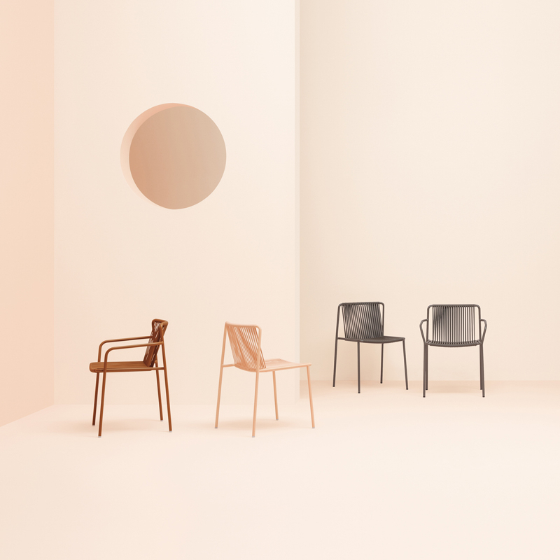 Editée par Pedrali, Tribeca est une réinterprétation moderne des chaises de terrasse classiques des années 60 en acier entrelacé. La chaise Tribeca est dotée d’une structure en tube Ø20mm peint pour l'extérieur. Le dossier et l’assise sont créés à partir d’un entrelacement de fil de PVC renforcé en Nylon. La technique et les matériaux utilisés ont permis de proposer une chaise à la fois confortable et légère. Disponibles en version avec ou sans accoudoirs, les chaises empilables Tribeca sont spécialement conçues pour une utilisation en extérieur.