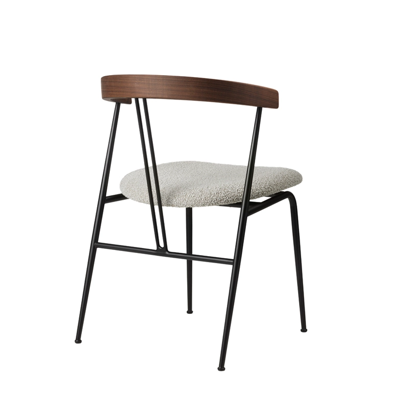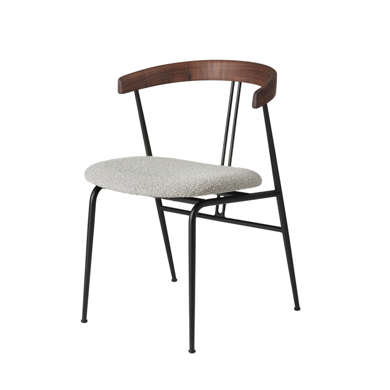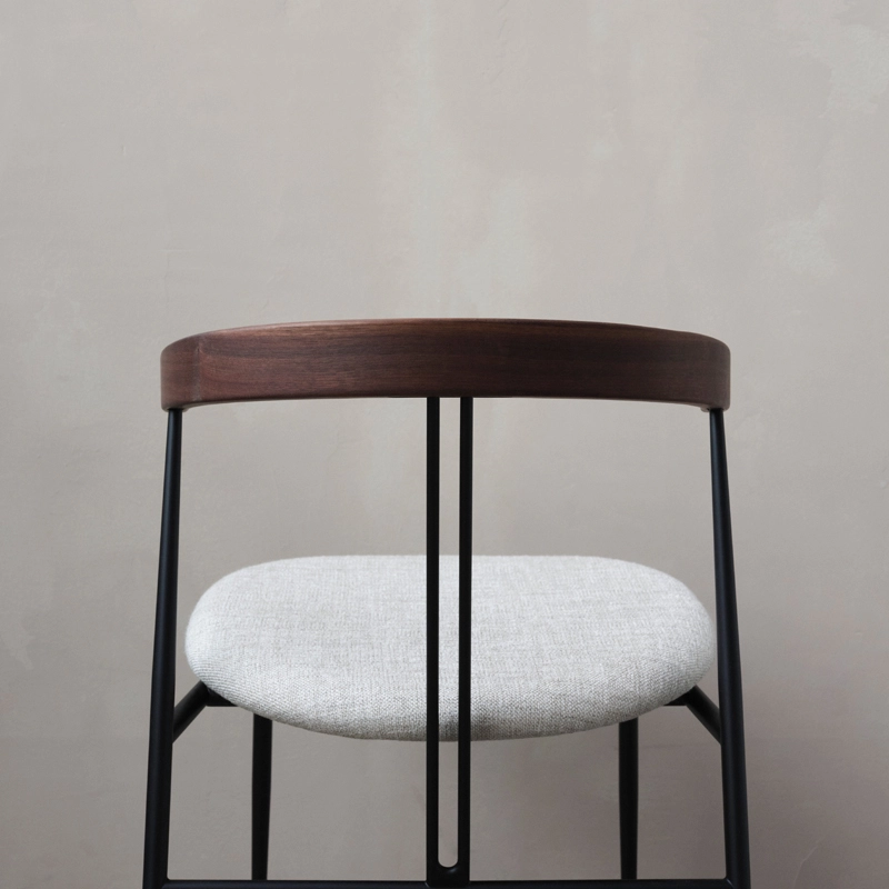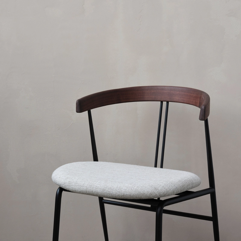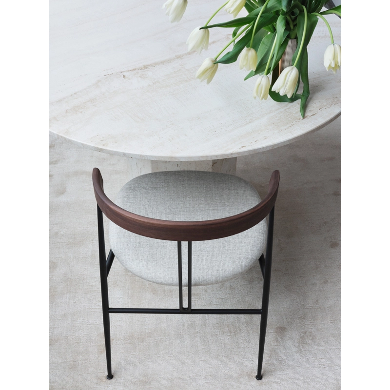 Dessinée par le duo GamFratesi pour la marque Gubi, Violin est une collection de chaises élégantes, légères et contemporaines, qui illustre parfaitement le savoir-faire, la créativité et la compréhension des matériaux du duo de designers. Le nom fait référence aux deux lignes parallèles qui s’étendent du dossier jusqu’à une barre horizontale sous le siège, évoquant les cordes d’un violon, ou même un diapason. La musicalité du nom résonne avec une chaise qui évoque un instrument de musique dans sa géométrie, sa symétrie et son savoir-faire. D’autres détails tels que les lignes douces de chaque côté de ces barres parallèles imprègnent la chaise d’une expression distinctive. Les détails raffinés donnent à la chaise Violin sa signature esthétique ainsi qu’un support fonctionnel pour le dossier. La structure effilée supporte un siège généreux tout en rondeur et un dossier enveloppant qui s’étend pour soutenir les bras, les coudes ou les mains. La forme du dossier permet des mouvements faciles tout en étant très confortable, même après un long diner. Disponible avec une assise rembourrée associée à un dossier en bois ou dans une version plus volumineuse où l’assise et le dossier sont rembourrés, la chaise Violin est dotée d’une silhouette claire et d’une identité forte, trouvant sa place aussi bien dans les intérieurs contemporains que dans les espaces collectifs. Avec son poids réduit, la chaise Violin est facile à déplacer et sa structure ouverte lui donne un aspect aérien.